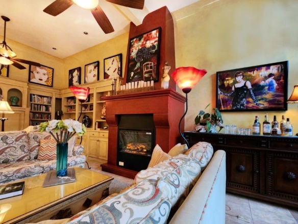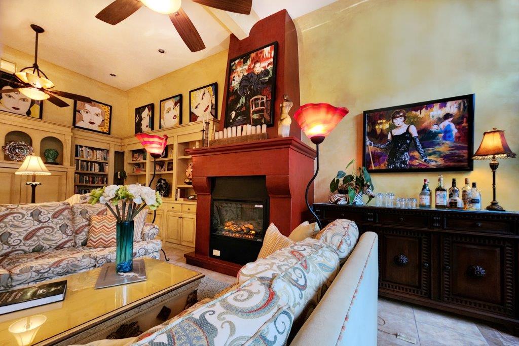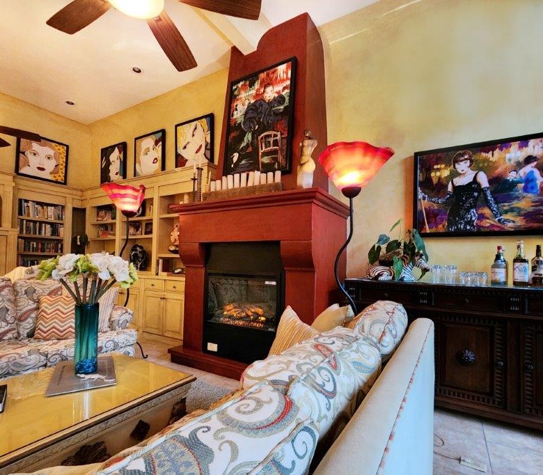 In a nutshell, Bellissima’s-The House of Beauty, features five/six bedrooms, six and half bathrooms, four kitchens, five Eco-Smart dedicated hot water heaters, a flex room now used as an office (the 6th bedroom, should you wish), a separate Casita with two terraces, a Canterra fountain, five A/C units, eight TVs, seven fireplaces, a gourmet kitchen with huge walk in pantry, off street parking from the Privada with automatic garage door opener, all fully and completely furnished with exquisite furniture and art and decor, security systems, a hotel internet system with fiber optic cabling, a large solar heated swimming pool, several outdoor private lounging and reading areas, and let’s not forget to mention the hydro spa, fire-pit, and several BBQs are of which are included.