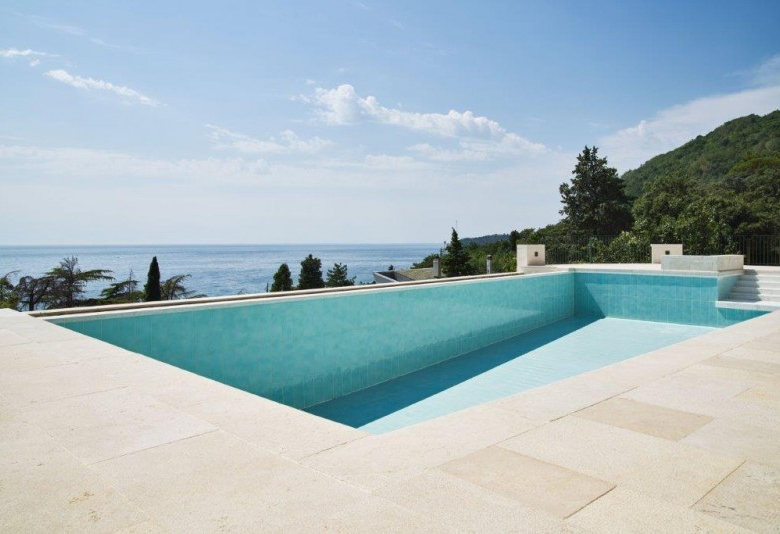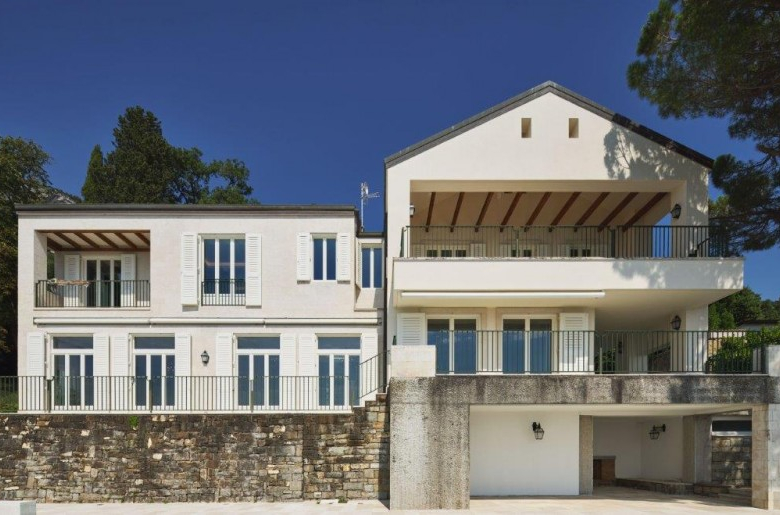 Spectacular and majestic with its white Istrian stone facade , the villa has numerous terraces and arcades from which one can enjoy the breath taking view . The villa welcomes its guests with its sunny and exclusive location and high end interior design : three living areas with sea views and direct access to the terrace , high tech kitchen fitted with Wolf and Sub zero appliances with an 8 people dining table and triple oven. The kitchen has marble worktops , a large central kitchen island and perfect connections between living and dining areas . You can reach the first floor via the elegant lift or through a majestic staircase form the main hallway . On the first floor you will find 5 exclusive large bedrooms all with luxurious marble / onus bathrooms fitted with both bath and showers , three bedrooms benefit of very large walk in closets designed at the highest standards . The sea can be proudly viewed from all bedrooms .