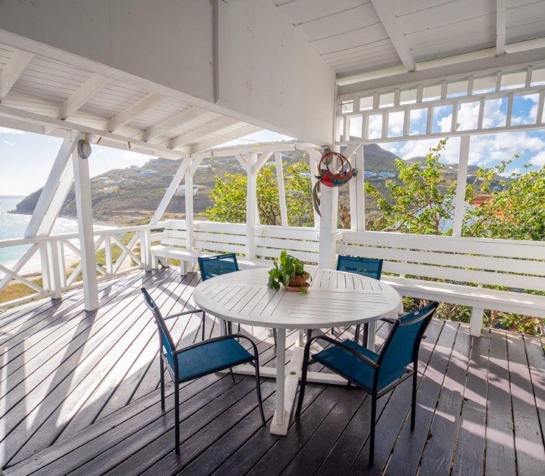 The property hosts on the main floor 4 bedrooms with 4 bathrooms walk-in closet, kitchen, a living and dining area, a loft and porches with beautiful wooden decks that overlook the swimming pool. The living room has plenty of windows and sliding doors where you can admire the panoramic view and on a sunny day you can see St. Barths and Saba islands.