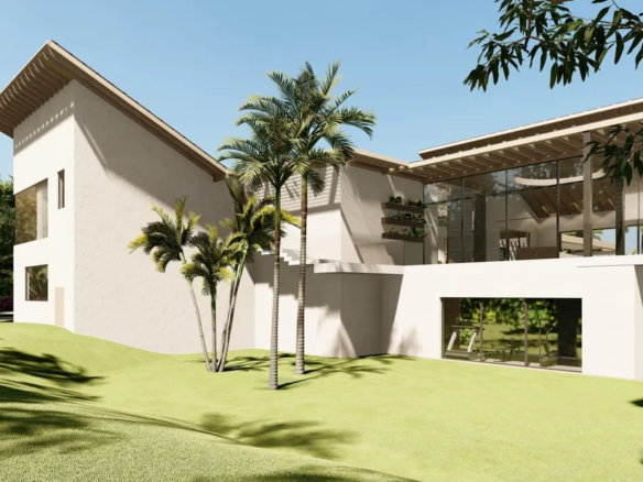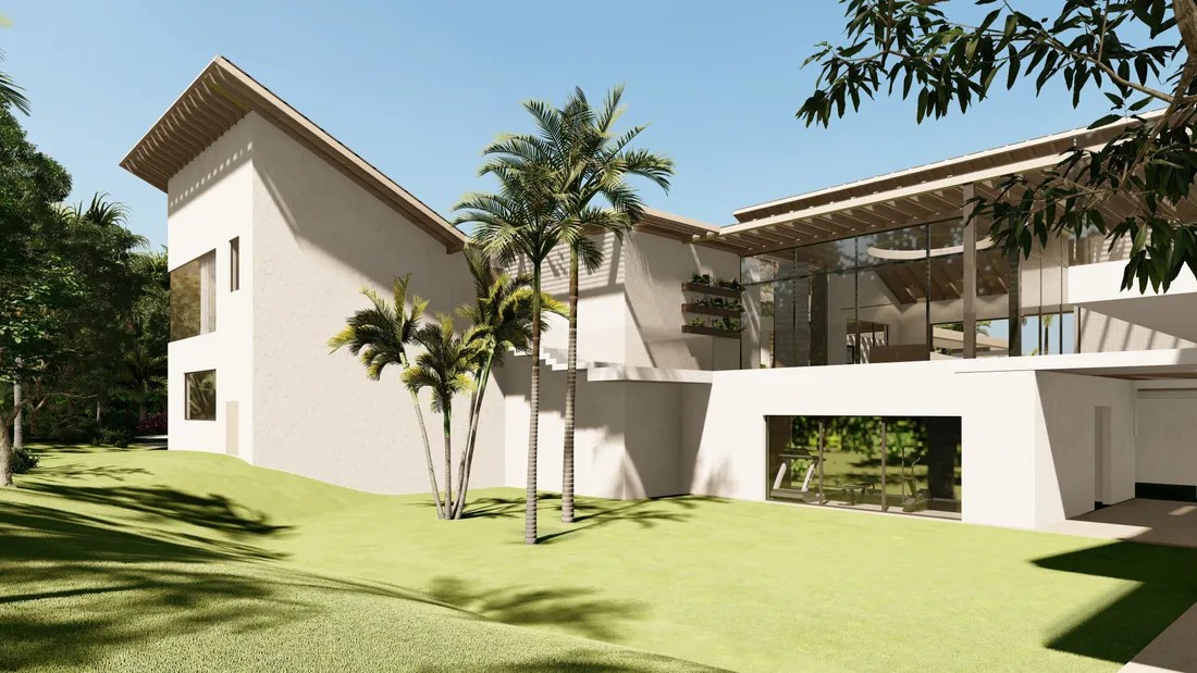 This architectural masterpiece, spanning a generous 1,888 square meters (20,322 square feet) of constructed space, is meticulously designed to create a seamless flow between indoor and outdoor living. Set upon a sprawling 2,795 square meter (30,089 square feet) plot, the villa is enveloped by a lush, tropical landscape, providing a private oasis of tranquility.
