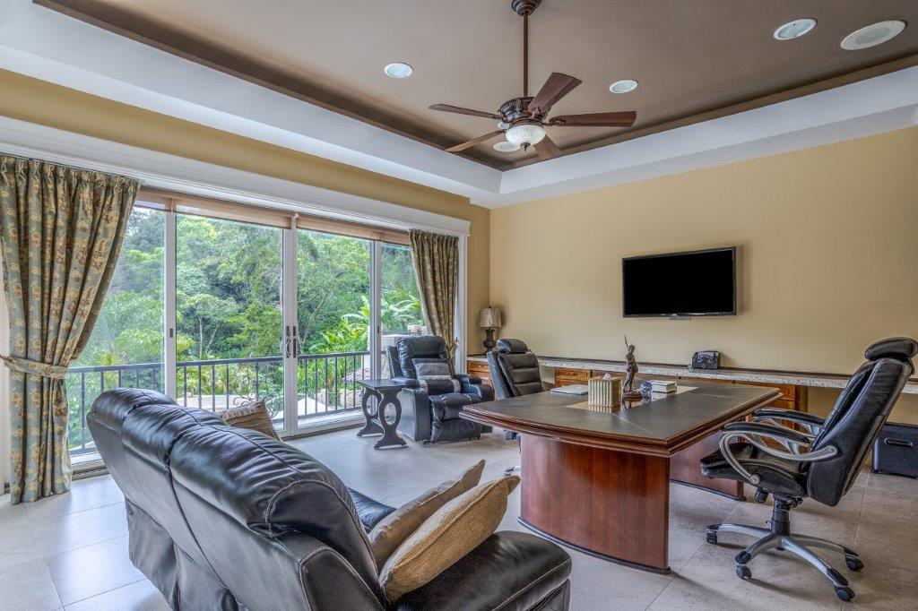 One of the largest homes in Panama, this one of a kind, 23,000k sq ft estate is positioned at the highest point of the Valley, set against the mountainside. Strategically positioned between the 2 coastlines, a quick 1 hour drive to the pacific beaches and 2 1/2 to the Caribbean islands. This estate home is the perfect family or corporate retreat. Plenty of space for privacy. Enjoy comfortable year round temperatures without mosquitos, while viewing the sunset from your private balcony of the 4th level terrace. This immaculate estate comes fully furnished with 7 bedrooms, of which 3 are Master Suites accompanied by 9 full bathrooms & 2 half-baths. A built in elevator provides easy access to all 4 stories. Host your guests in any of the 3 on site guest houses.The estate is equipped with full time, triple gate security and camera systems and is completely self sufficient by propane generator and back up well with fully functional hydroponics greenhouse, spring fed ponds and sprinkler system.