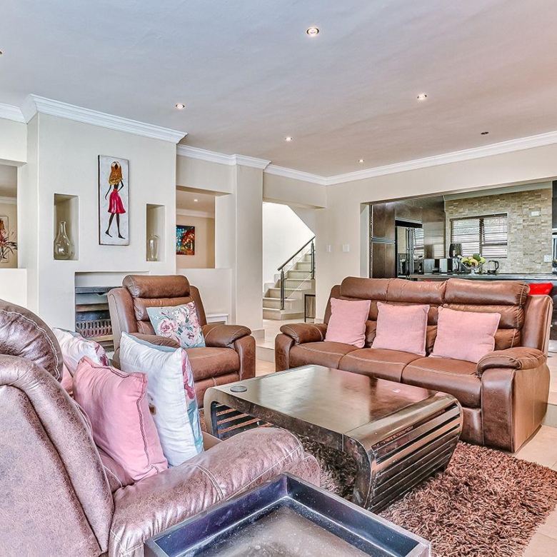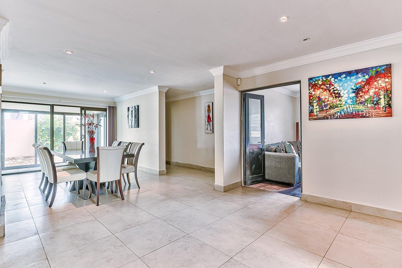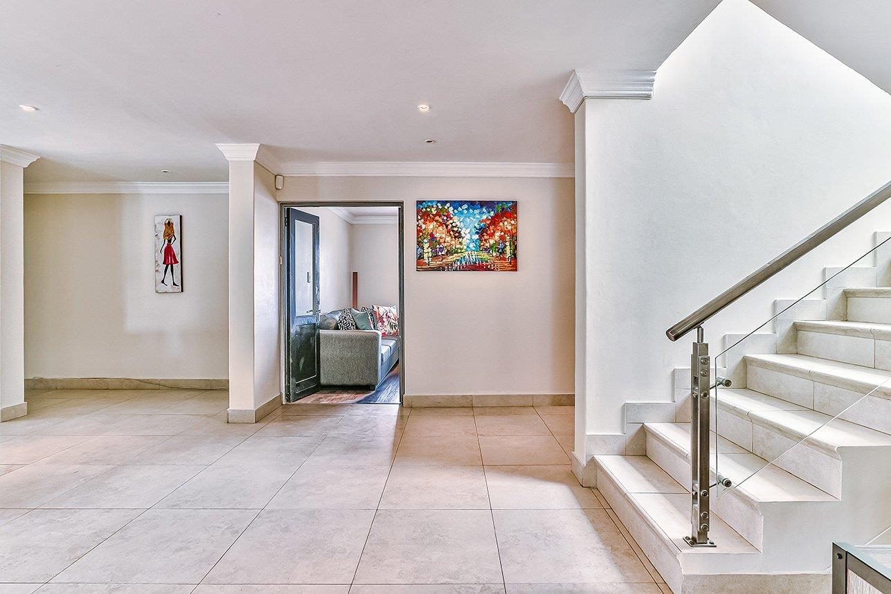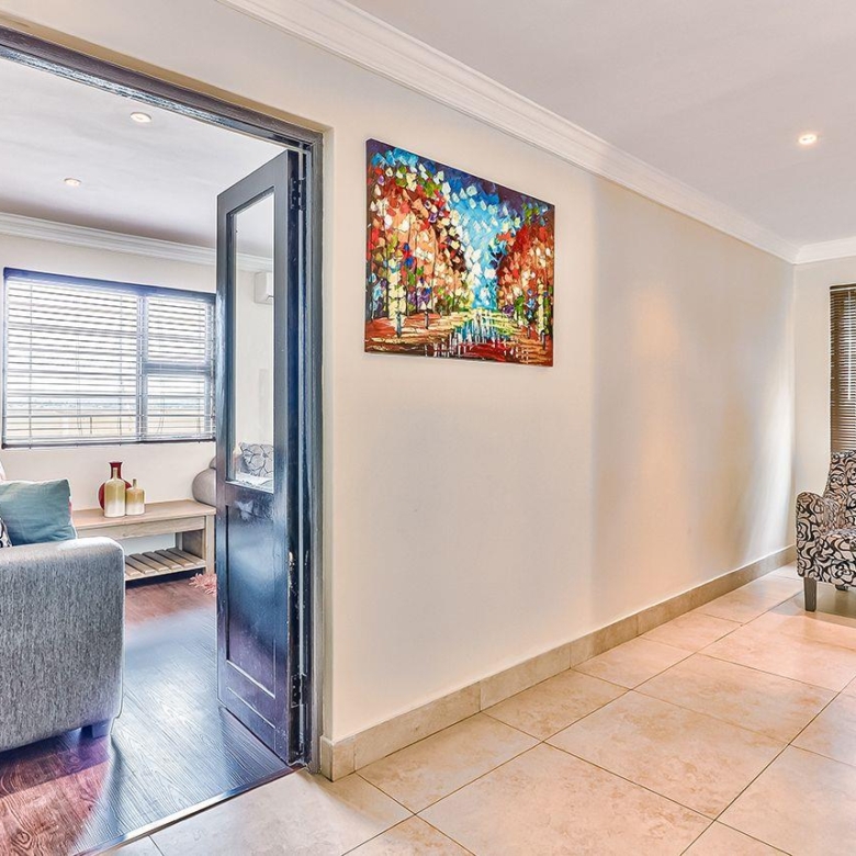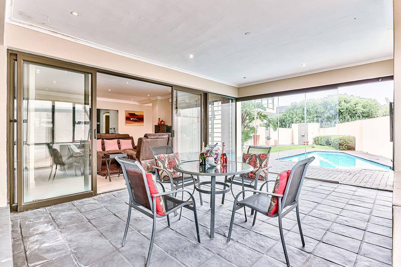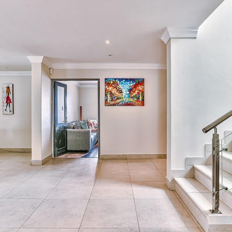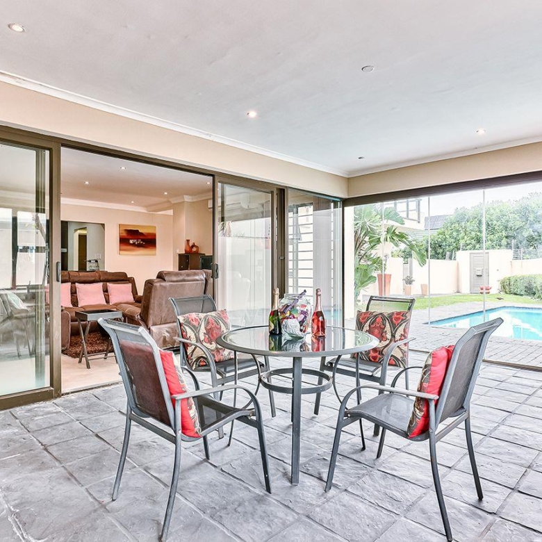 Extend your living space to the expansive entertainment area, enclosed with glass stacker doors. This versatile space seamlessly blends the indoors and outdoors, perfect for al fresco dining or hosting memorable gatherings. Step outside and cool off in the sparkling swimming pool, surrounded by a delightful garden – your own private oasis in the heart of Cape Town.