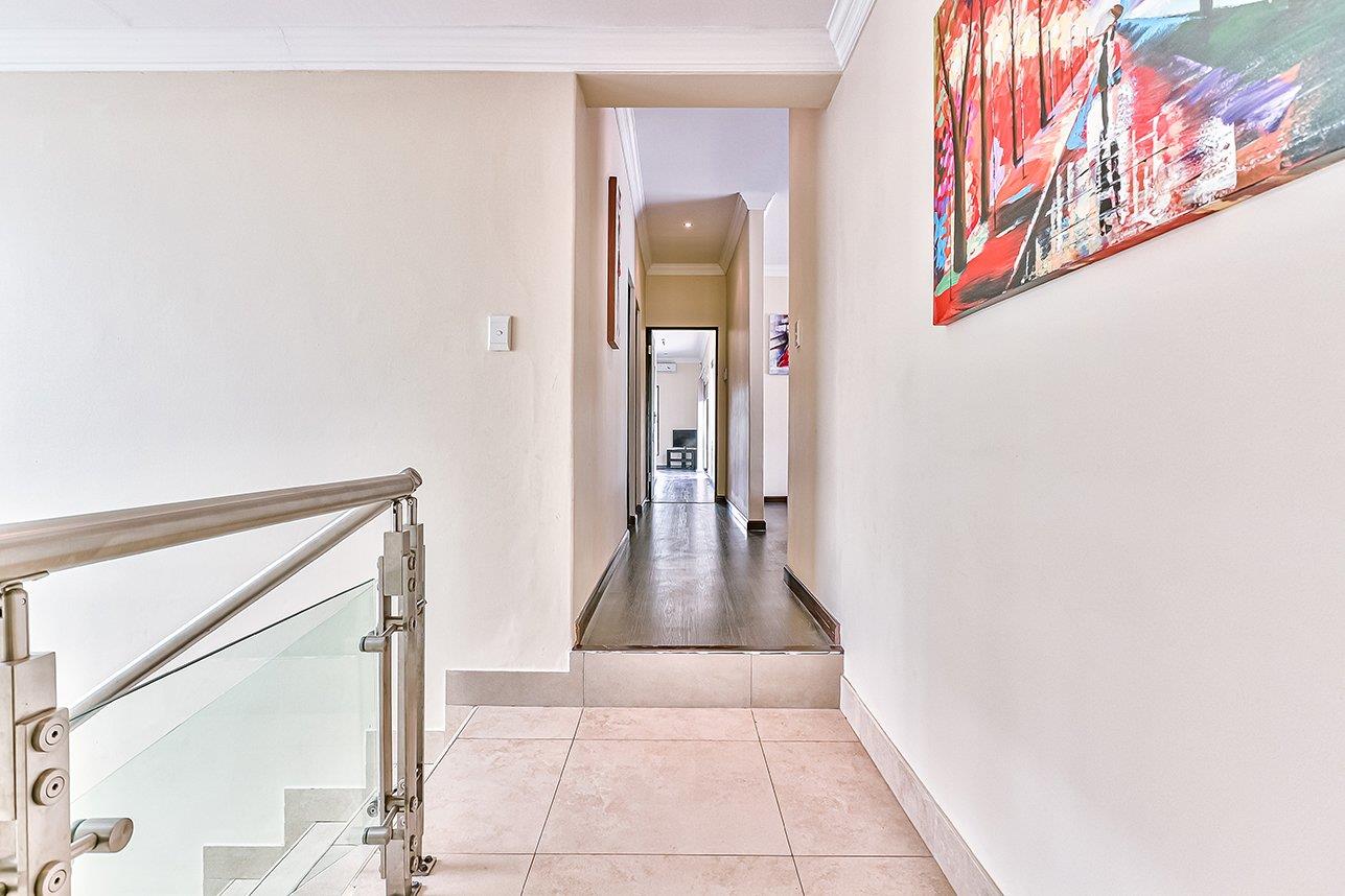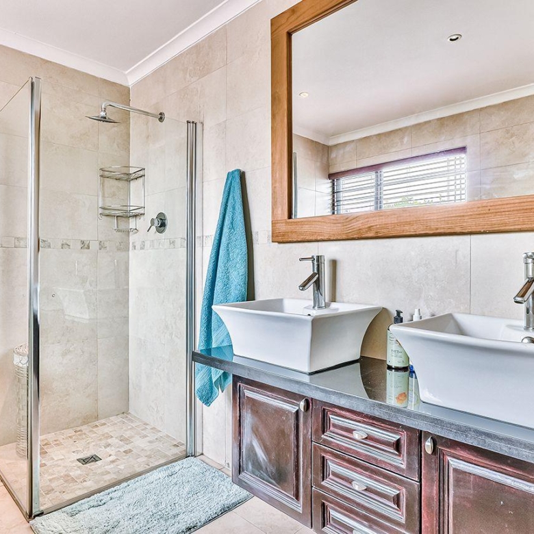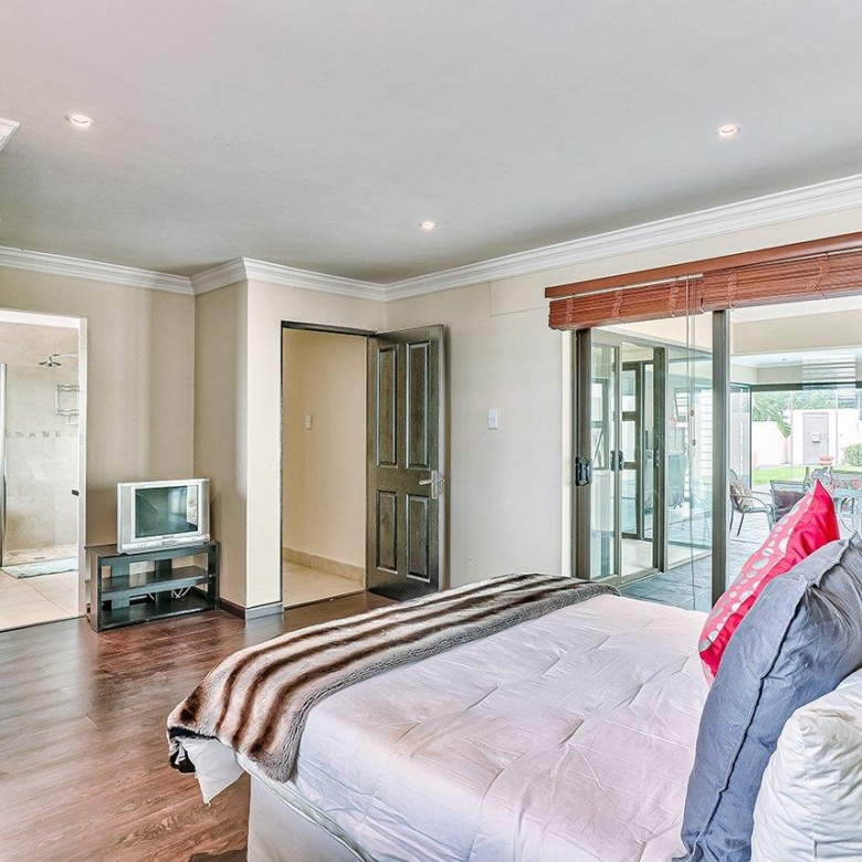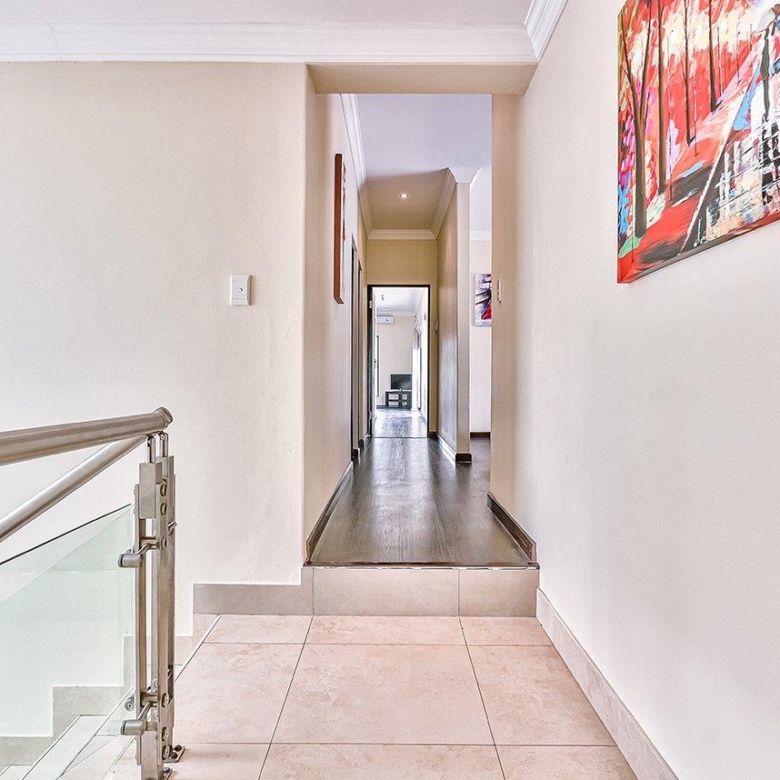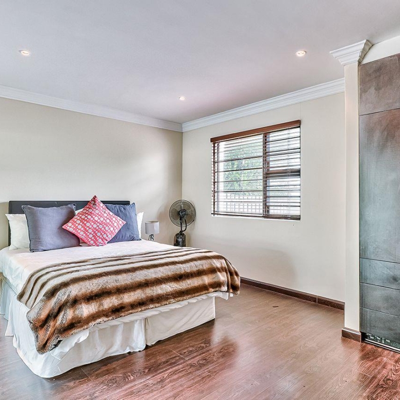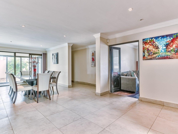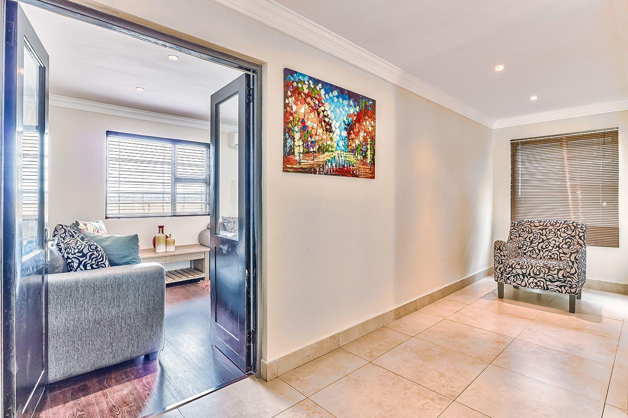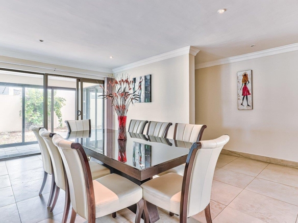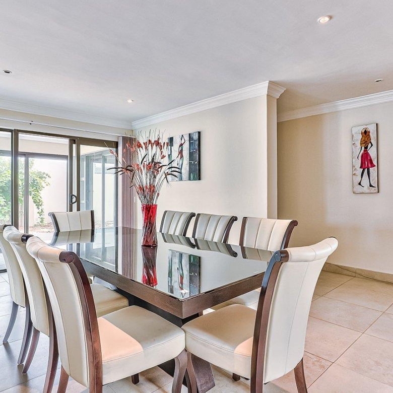 Extend your living space to the expansive entertainment area, enclosed with glass stacker doors. This versatile space seamlessly blends the indoors and outdoors, perfect for al fresco dining or hosting memorable gatherings. Step outside and cool off in the sparkling swimming pool, surrounded by a delightful garden – your own private oasis in the heart of Cape Town.