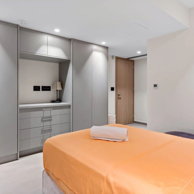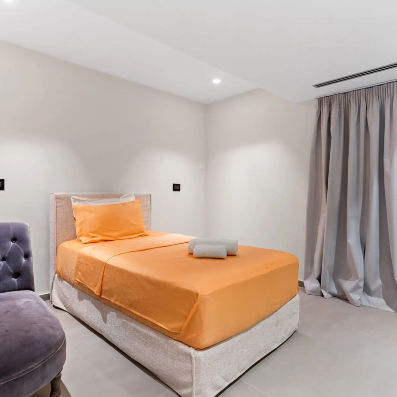 The basement level of Villa Athanasia is designed for recreation and wellness. A luxurious en-suite bedroom, complete with a private bathroom, offers a private and comfortable space for guests or family members. A convenient laundry room, equipped with a washer and dryer, adds to the practicality of the villa. The basement also houses a fully equipped gym, allowing you to maintain your fitness regime while enjoying the privacy of your own home. A game room, complete with a billiard table, provides entertainment for all ages. A home theater offers the perfect setting for movie nights and enjoying your favorite films. A flexible additional room, complete with a bathroom and closet, can be adapted to suit your needs, whether as an office, a hobby room, or additional guest space.