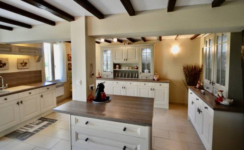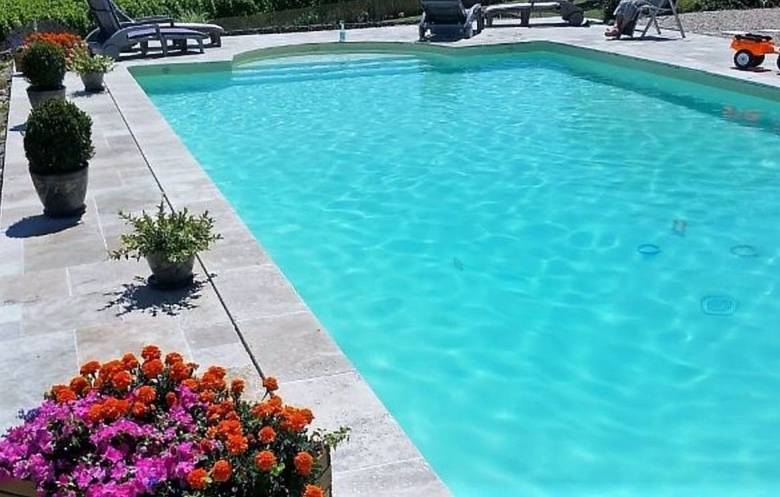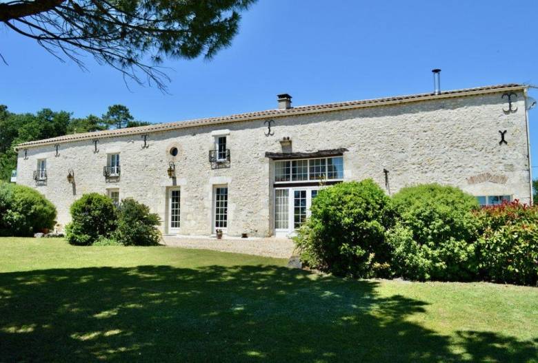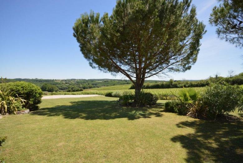 The lovely grounds of 3000m2 (0.75 of an acre) are set mostly to lawn, with a few mature fruit trees and a pretty heated pool 5.5m x 11.5m). The estate overlooks a stunning valley of vineyards, from the local Bordeaux Superieur appellation.