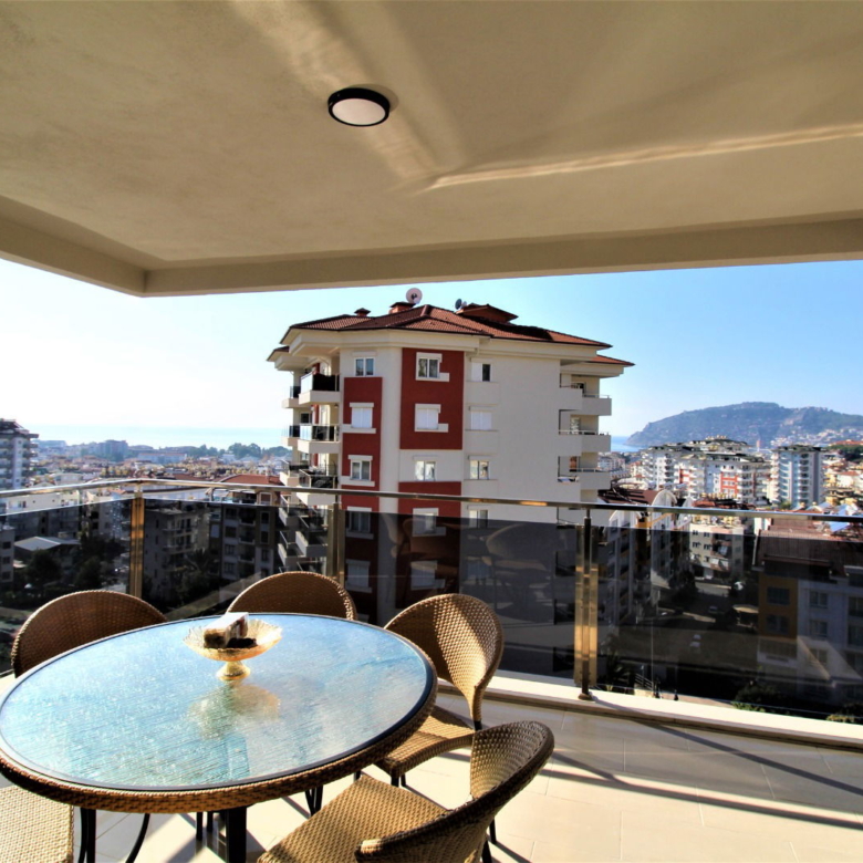 Fully Furnished 3 Room Apartment for Sale in Alanya Park – 800m to the Beach with Full Sea and Castle View