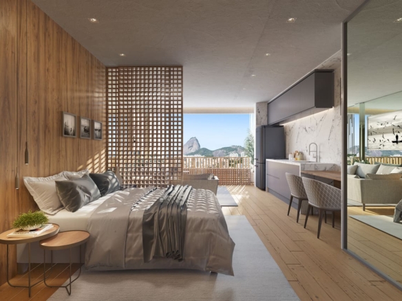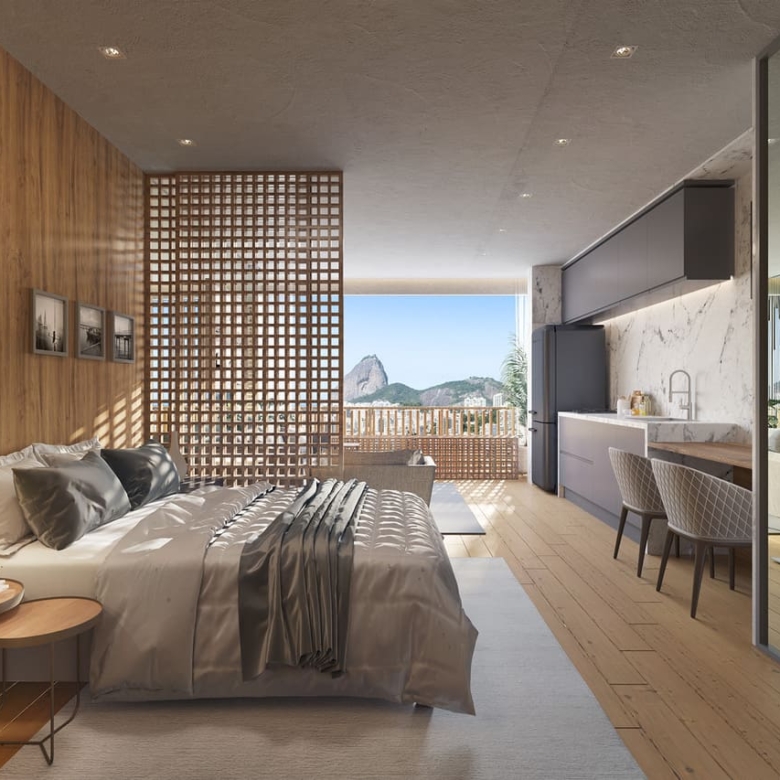 In this complex, which will be ready in August 2026, there are studios, lofts, 1 bedroom apartments, and 2 bedroom apartments. Located in Humaitá, close to a gastronomic area, with views to the Sugar Loaf and/or Corcovado (Christ the Redeemer), which are 2 main touristic points in Rio de Janeiro city, and not far from the beach, this is a good place to spend some time in the vacation and have fun and to make money renting it using AirBNB and other places.