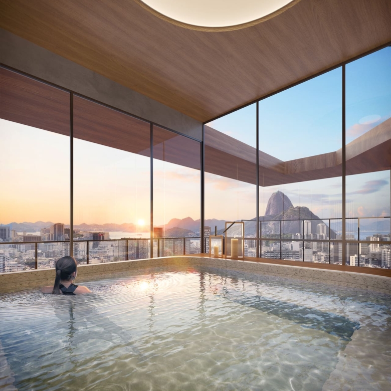 In the rooftop (17th floor), in 600 square meters entertainment area, there will be a swimming pool, a bar at the swimming pool, sauna, 2 spas with hydromassage (in and outdoors), a gym, a massage room, and a functional exercises room and a nice view of the city including its 2 main touristic points. Using the place app, you will be able to set a time for a massage whenever you want and do many other things.
