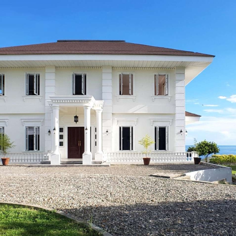 Nestled on an expansive 6,668 square meters (71,774 square feet) of pristine seafront land on the enchanting Panglao Island in the Philippines, ‘Manor by the Sea’ stands as a testament to luxurious coastal living and architectural brilliance. This exceptional estate boasts a clean and unencumbered title, ensuring a seamless transfer of ownership. A significant and highly coveted feature of this property is its direct private access to the sparkling turquoise waters and a seasonal white sand beach, offering residents an exclusive gateway to the natural beauty of the Philippine coastline. The meticulously designed and constructed area of the estate spans an impressive 1,067 square meters (11,485 square feet), encompassing a magnificent manor house, a charming coach house, and additional supporting structures, all set within mature and exquisitely landscaped gardens that frame stunning panoramic views of the sea and the majestic surrounding mountains.