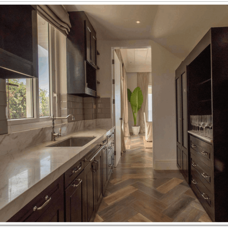The Gourmet’s Kitchen is a culinary enthusiast’s dream come true, meticulously designed and appointed with the finest materials and appliances. Custom-made cabinetry, featuring soft-closing doors and drawers, provides ample and organized storage. The expansive Volakas marble countertops offer a luxurious and durable workspace, complemented by elegant glazed subway tile backsplashes and subtle under-cabinet LED lighting. Special fixtures include a statement 90cm cast-iron apron-front sink by Kohler and a convenient pot-filler strategically placed above the high-end cooktop. The air-conditioned kitchen seamlessly connects to an adjacent butler’s pantry, providing additional preparation and serving space. The butler’s pantry, which also features its own bar sink, offers a concealed door leading to the formal Dining Room, ensuring discreet and efficient service. Both the main kitchen and the butler’s pantry are equipped with top-of-the-line appliances, including two Samsung refrigerators, a Siemens dishwasher, cooktop, convection oven, dual-motor extractor hood, and microwave oven, catering to the most discerning culinary needs. Adding to the practicality of the Manor House is a substantial 105 square meter (1,130 square feet) fully ventilated basement, which houses the property’s advanced technical equipment, including water tanks, rainwater filtration equipment, and air-conditioning condensers, while also providing full and easy access to the plumbing and electrical lines for maintenance.
