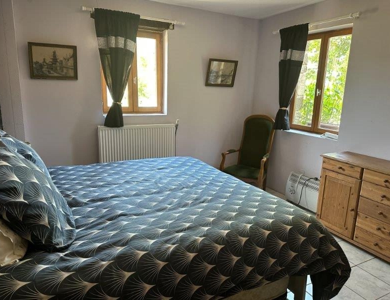Laminate flooring. Radiator. Exposed stone. Sloping ceiling. Door to: En-Suite Shower Room 2.09 x 1.36m Sloping ceiling. WC. Shower with jets. Hand basin. THE ACCOMMODATION IN ‘LE CHATEAU’ COMPRISES : On the Ground Floor – ‘L’ Shaped Main Room 6.90 x 4.59m (minimum) Door and 2 windows to south and window to east elevations.