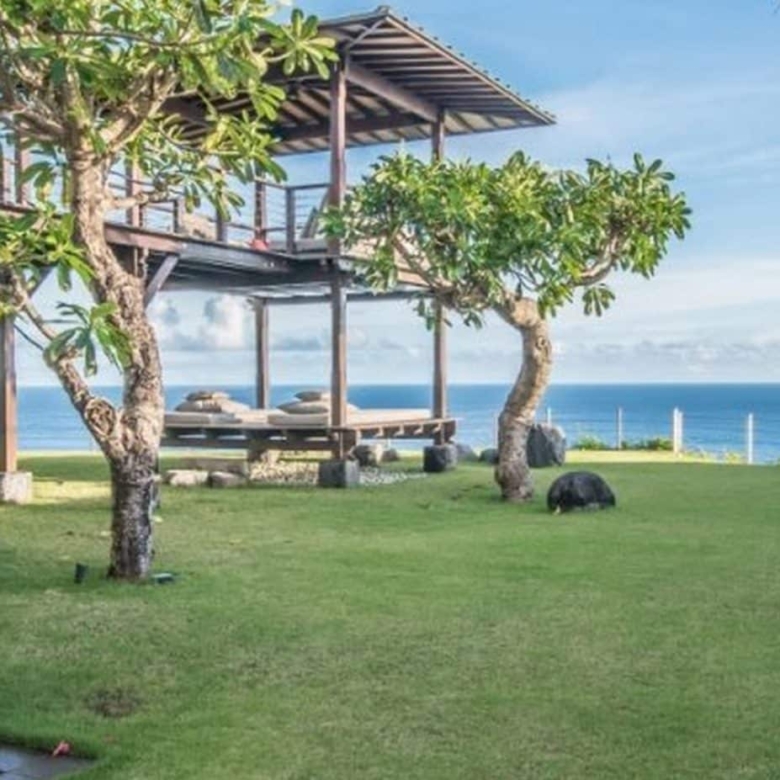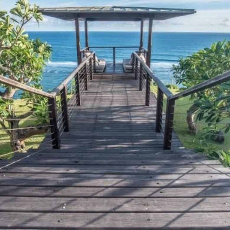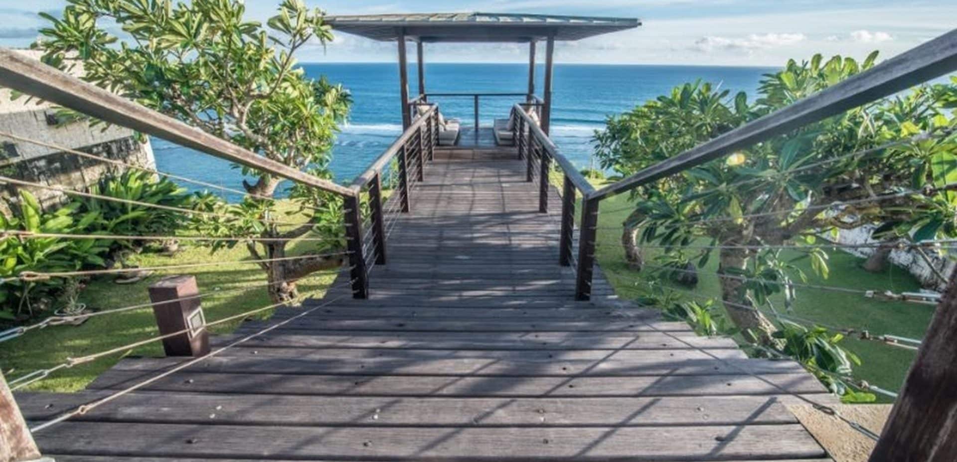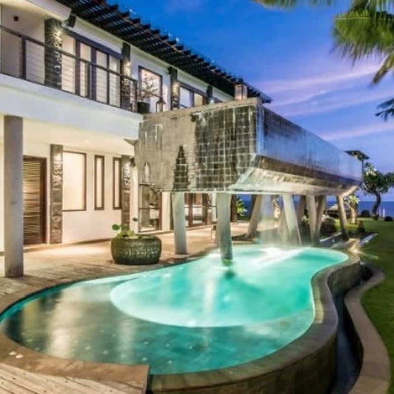 Soak up the stunning views of the glimmering indian Ocean from this two-story designer dream home located on glamorous ‘millionaires row’ on the Pandawa cliffs of southern Bali. Exclusively designed by German architect – Walter Wagner of Habitat 5, and featured in design magazines, this amazing three bedroom, three bathroom villa has the best of both worlds – fantastic views from its cliffside perch, as well as direct access to a pristine hidden beach just below.The two-level swimming pool is a design masterpiece, cleverly constructed on stilts to resemble a boat on dry dock, with water cascading from the upper level to the lower to create a soothing waterfall effect.The top floor features indoor and outdoor living areas, soaring ceilings, air conditioned kitchen and dining area, as well as a stunning master bedroom with wall to wall glass windows revealing spectacular views over the pool and ocean. Further design highlights include the extensive use of distressed wood and locally-sourced limestone, marble and black granite throughout the generous 1000sqm of living space.The balustraded walkway leading to a furnished bale with breathtaking views over the turquoise sea is perfect for sipping a morning coffee or indulging in a candlelit dinner.Close to the safe swimming beach at Pandawa, the legendary surf break of Green Bowl as well as two golf clubs and some of Bali’s most prestigious resorts, including the Ritz-Carlton and Kempinski, this is an incredible opportunity to buy your own unique slice of Bali paradise. Contact us now for more details on this truly iconic freehold property.