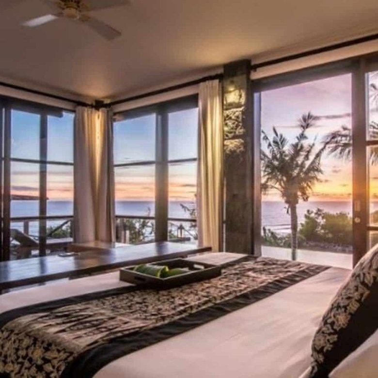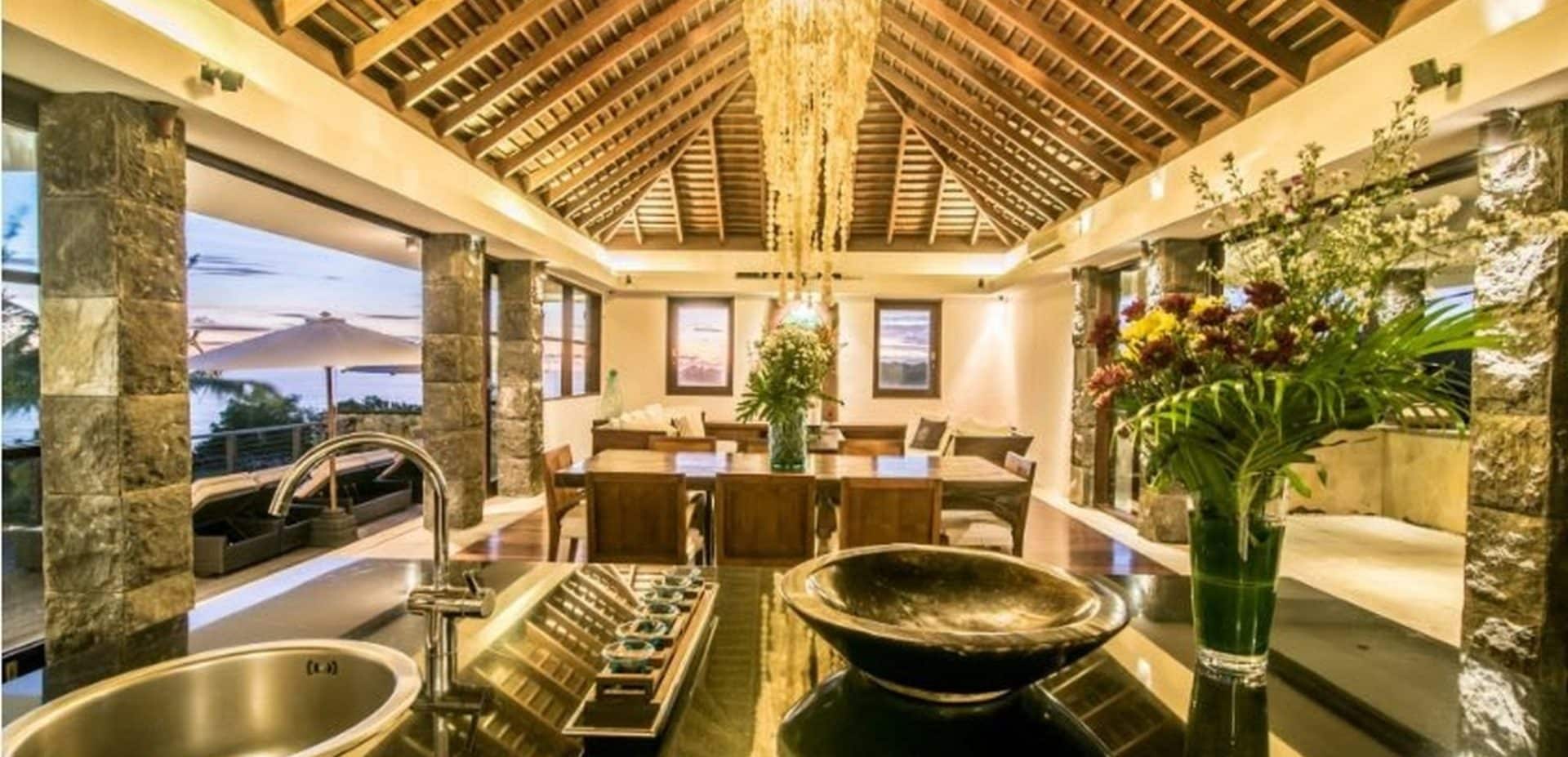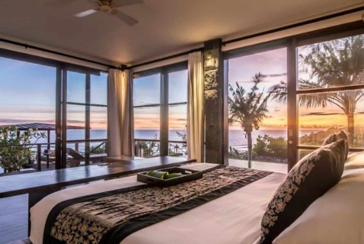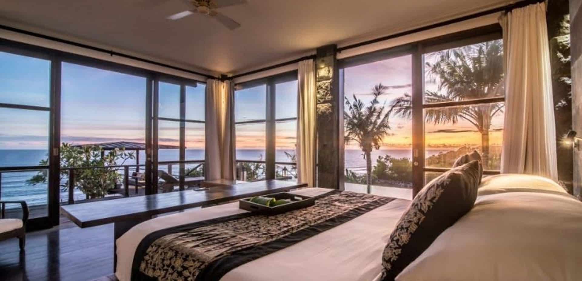 Soak up the stunning views of the glimmering indian Ocean from this two-story designer dream home located on glamorous ‘millionaires row’ on the Pandawa cliffs of southern Bali. Exclusively designed by German architect – Walter Wagner of Habitat 5, and featured in design magazines, this amazing three bedroom, three bathroom villa has the best of both worlds – fantastic views from its cliffside perch, as well as direct access to a pristine hidden beach just below.The two-level swimming pool is a design masterpiece, cleverly constructed on stilts to resemble a boat on dry dock, with water cascading from the upper level to the lower to create a soothing waterfall effect.The top floor features indoor and outdoor living areas, soaring ceilings, air conditioned kitchen and dining area, as well as a stunning master bedroom with wall to wall glass windows revealing spectacular views over the pool and ocean. Further design highlights include the extensive use of distressed wood and locally-sourced limestone, marble and black granite throughout the generous 1000sqm of living space.The balustraded walkway leading to a furnished bale with breathtaking views over the turquoise sea is perfect for sipping a morning coffee or indulging in a candlelit dinner.Close to the safe swimming beach at Pandawa, the legendary surf break of Green Bowl as well as two golf clubs and some of Bali’s most prestigious resorts, including the Ritz-Carlton and Kempinski, this is an incredible opportunity to buy your own unique slice of Bali paradise. Contact us now for more details on this truly iconic freehold property.