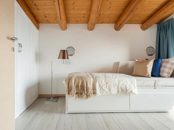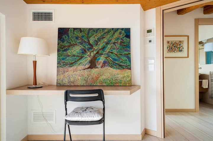 From the moment you arrive, you will be captivated by the apartment’s spectacular setting. Your private garden, adorned with lush palm trees, provides a personal oasis that frames the magnificent views of Lake Iseo—widely regarded as one of Italy’s finest and most beautiful lakes. This outdoor space is perfect for enjoying your morning coffee, al fresco dining, or simply relaxing while soaking in the majestic scenery.