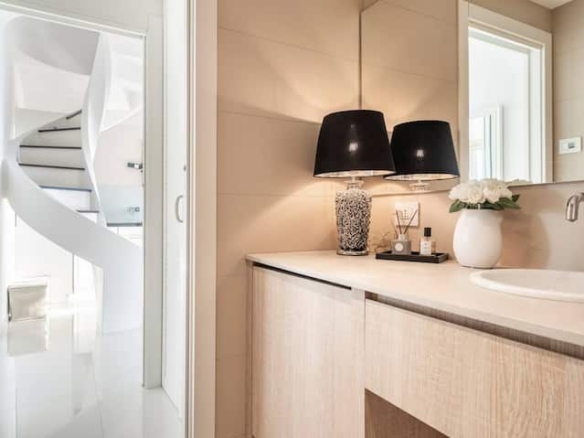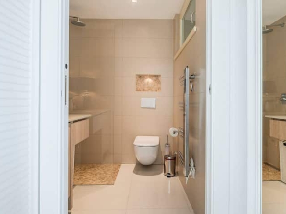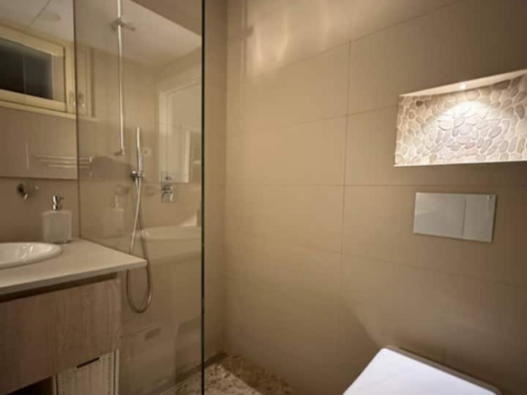 This home is a perfect blend of high-end aesthetics and smart technology. You can control the lighting and heating with the Smarthome system from Gewiss, managing the entire ambiance from inside the apartment or remotely. For entertainment, the living area features a home cinema experience with a state-of-the-art Loewe TV. The living experience is further perfected by hidden Daikin air conditioning units, ensuring the perfect climate throughout the year without compromising the design aesthetic. The entire apartment is fitted with high-end glass touch switches, adding a sleek, modern touch that enhances the overall luxury feel.