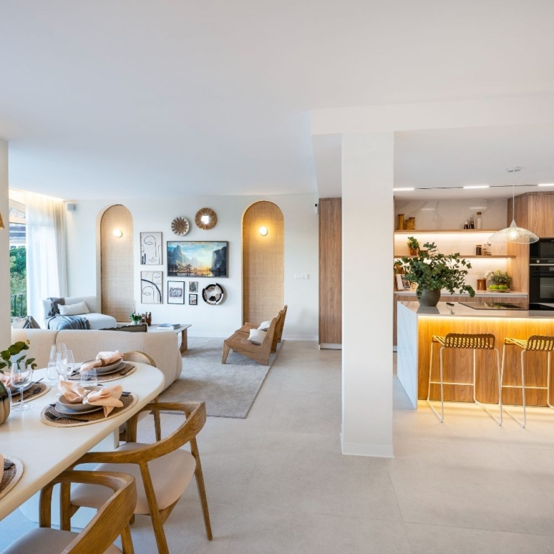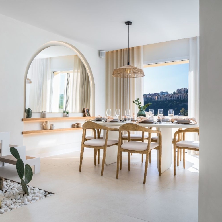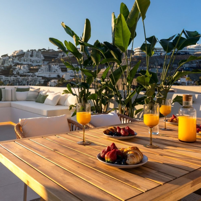 Located within the gated community of La Quinta Hills, Maison Bohème is an exceptional duplex penthouse that offers an unparalleled lifestyle in Benahavis. Meticulously renovated to the highest standards, this property epitomizes luxury living surrounded by the serene landscapes of La Quinta Golf Course. The first floor welcomes you with an expansive living area seamlessly connected to a gourmet kitchen featuring premium Smeg appliances. Step out onto the terrace to enjoy views to hills and the sea. A guest toilet adds convenience to this level. Ascending to the second floor, discover three tranquil bedrooms, including a master suite with an en suite bathroom, while the other two bedrooms share a beautifully appointed bathroom. Enjoy the comfort of floor heating in the bathrooms throughout this floor. Crowning this stunning home is the third-level roof terrace, offering breathtaking views of the golf course and sea, along with a designated dining and barbecue area for memorable outdoor gatherings. Within close proximity to La Quinta Golf Club, as well as the amenities of Puerto Banus and San Pedro, this duplex penthouse presents an exceptional opportunity to experience luxurious Mediterranean living at its finest.