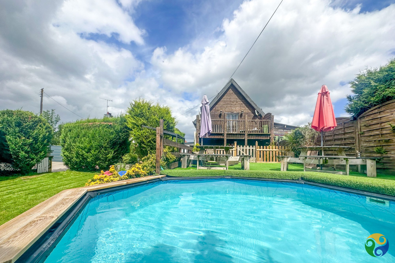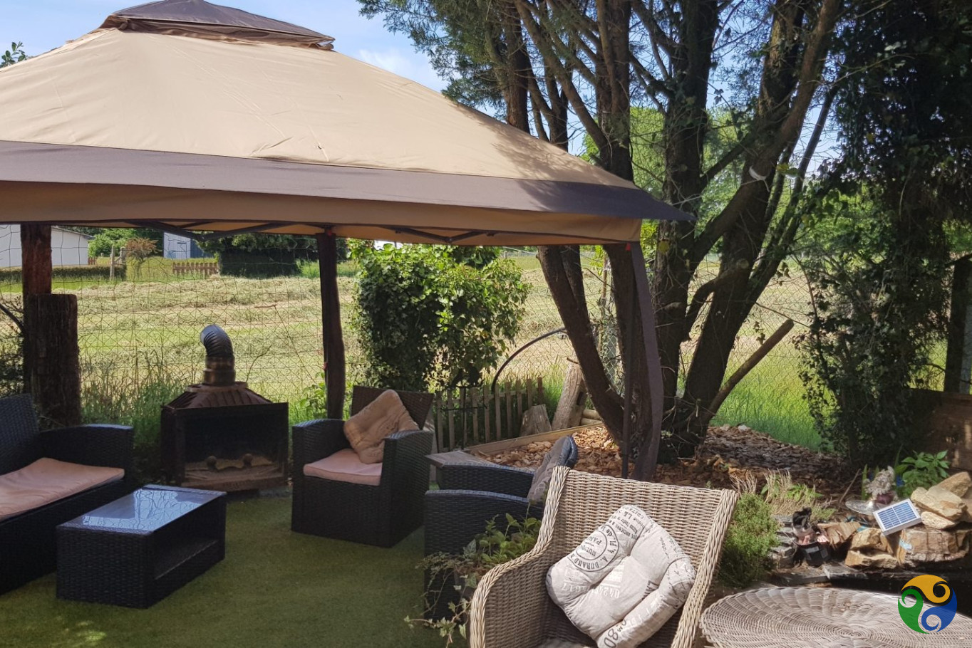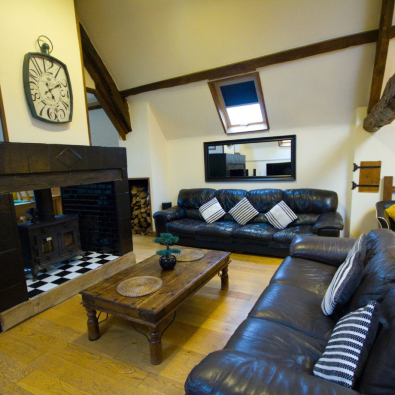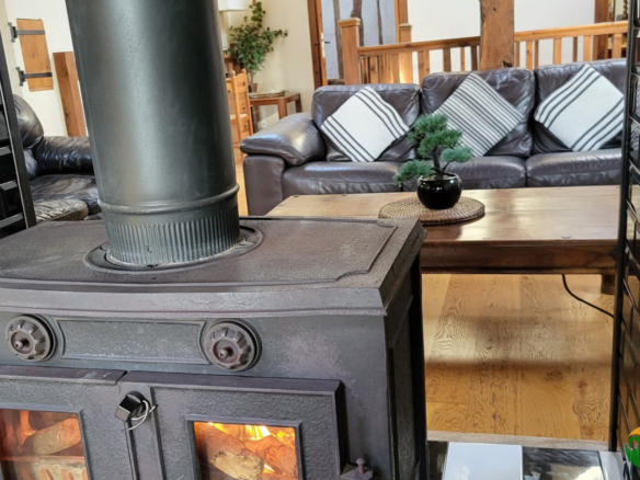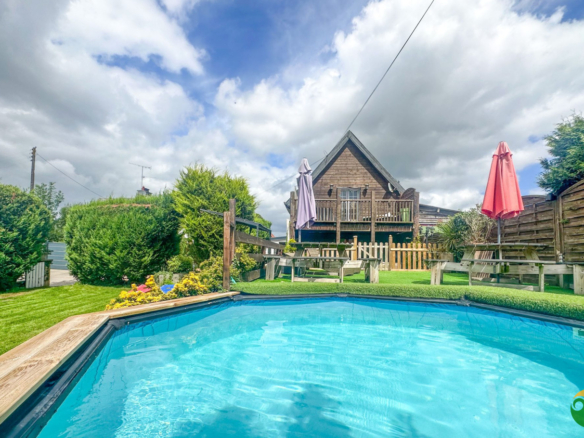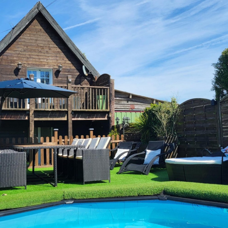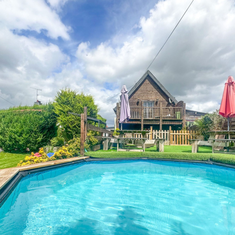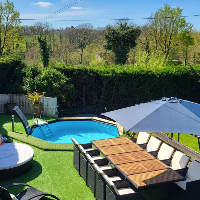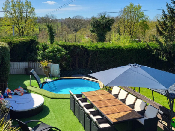 * The Converted Barn: A haven of comfort and entertainment, this converted barn features five bedrooms, three shower rooms, and a convenient separate WC in the pool area. The spacious kitchen boasts stunning oak units and granite worktops, a traditional Belfast sink, and a large lounge area ideal for socializing. A second-floor games room with a central log burner opens onto a balcony overlooking the delightful outdoor decked area and pool. For ultimate relaxation, the gite boasts an indoor 3×5 meter pool, jacuzzi, and sauna. A private garden enclosed by conifers ensures a sense of tranquility. This popular gite enjoys year-round bookings, guaranteeing a healthy turnover.