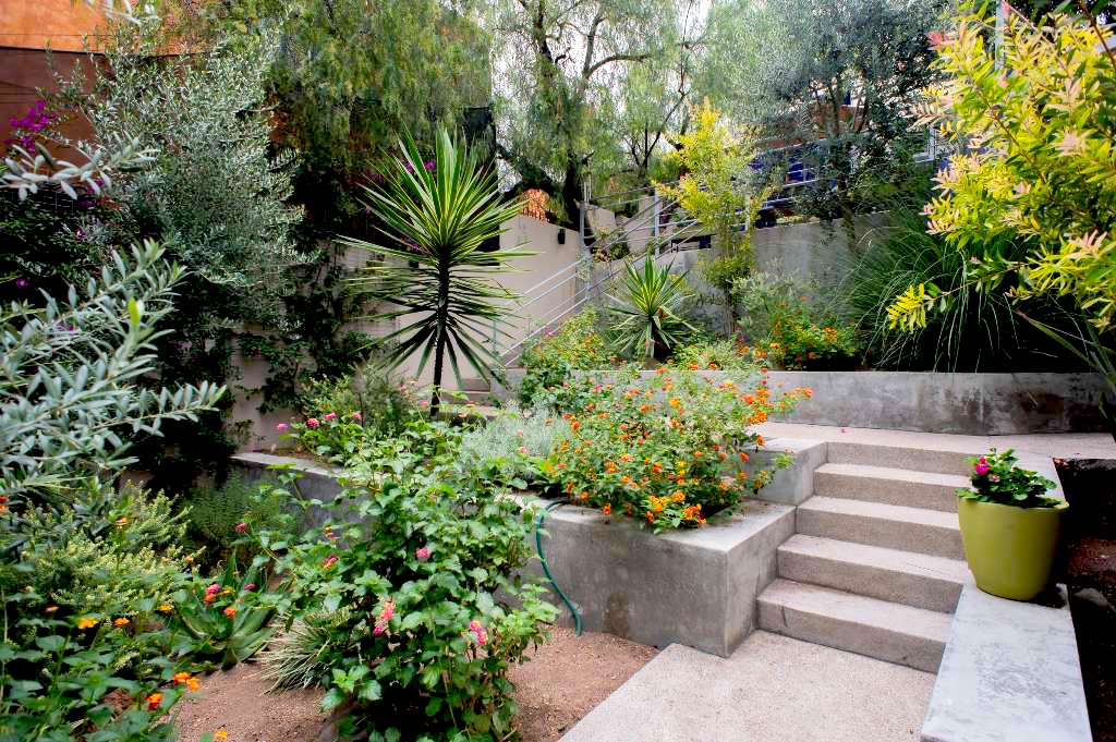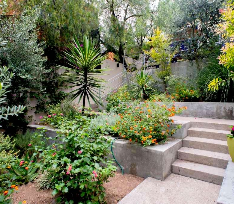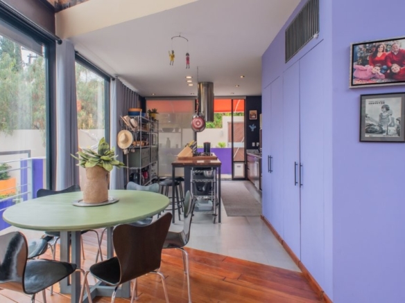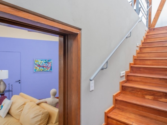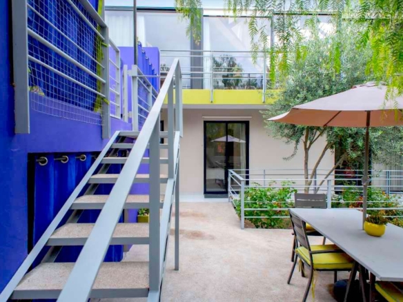 Descending from the entry level through Mediterranean-style gardens, you encounter a fully equipped two-bedroom, two-bathroom apartment, and a studio apartment, each with its own private off-street entrance. These units, currently generating income, provide a valuable asset, while also offering flexible accommodation for family and friends. A large studio/workshop on this level stands ready for creative endeavors.