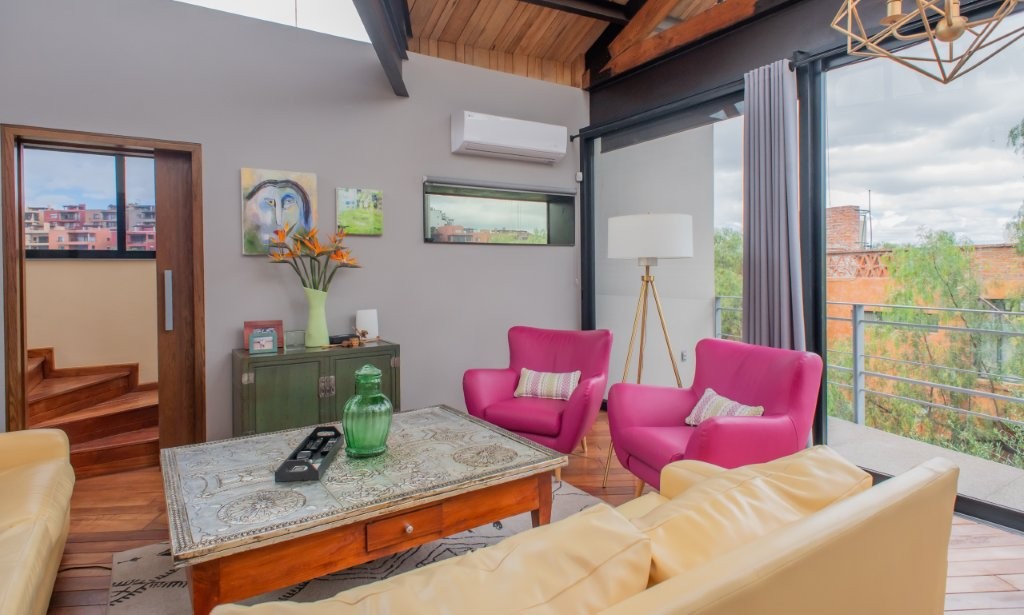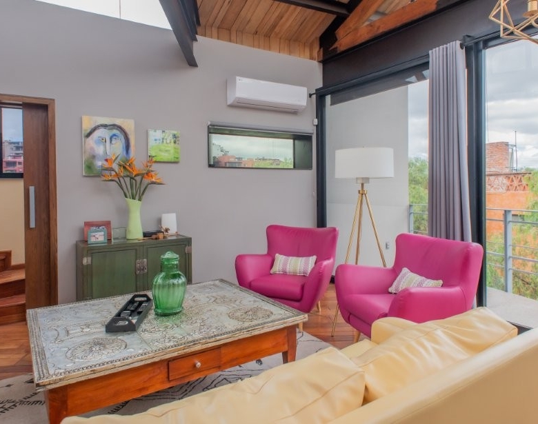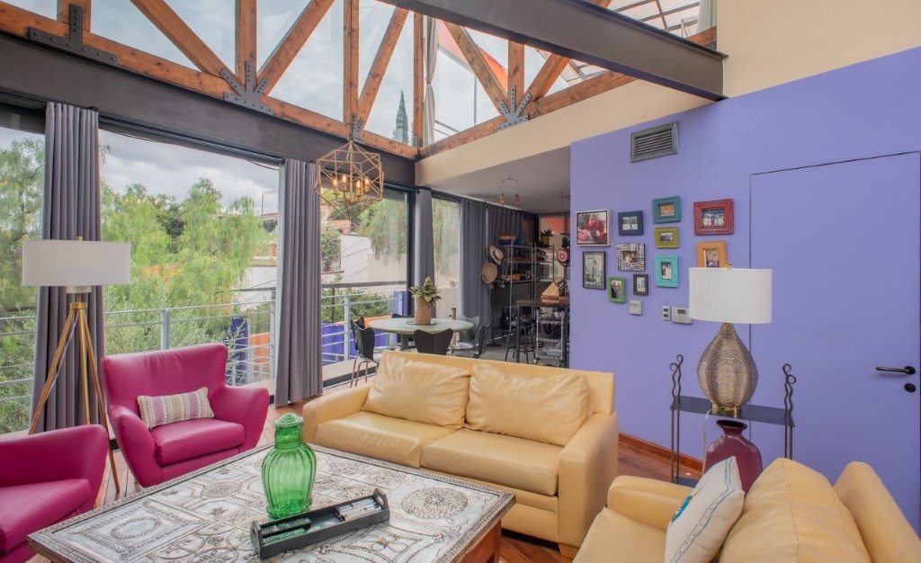 The Glass House Apartment is situated in a quiet, residential neighborhood, offering a peaceful retreat while remaining conveniently close to the heart of San Miguel de Allende.
