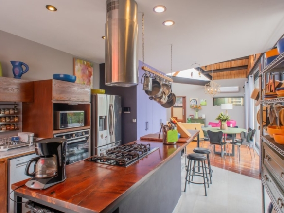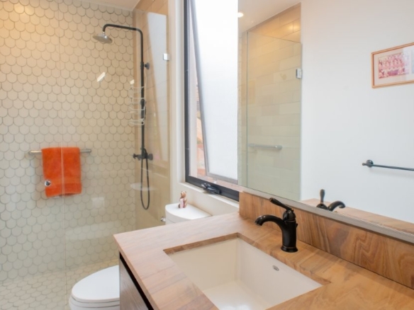 Custom design features, such as the mosaic tile wall design connecting patio gardens, add a unique touch, showcasing the property’s exceptional attention to detail. A top terrace features an al-fresco dining area with vast ‘million-dollar’ western views, perfect for enjoying the stunning sunsets that paint the San Miguel sky.