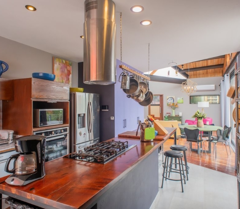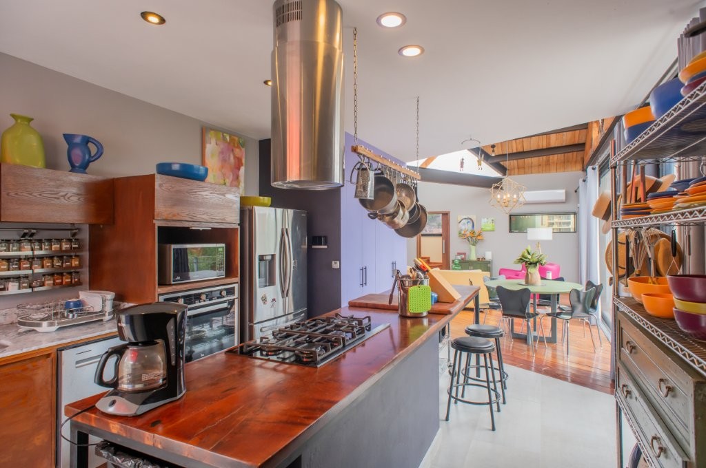 The chef’s kitchen, a testament to efficiency and design, is equipped with gourmet pots, pans, and knives, catering to the most discerning culinary enthusiasts. Handmade Provecho Pottery tableware, crafted in San Miguel, provides an authentic touch, accommodating up to six guests. Modern appliances, including a refrigerator, dishwasher, four-burner stovetop, countertop convection oven, microwave, coffee maker, and toaster, ensure convenience and functionality.