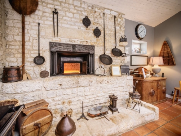 The Breakfast Room (24.665m2) is a true focal point, featuring beautiful ceramic tiled floors and a magnificent feature stone bread oven with an ornate cast iron door – a nod to the property’s rich history. This room boasts a dual central heating system, allowing you to choose between a rustic wood-fired Rayburn or the efficient oil-fired central heating boiler. Skylights in the timber-panelled ceiling bathe the space in natural light. From here, you access the Kitchen, and a staircase leading to the first floor.