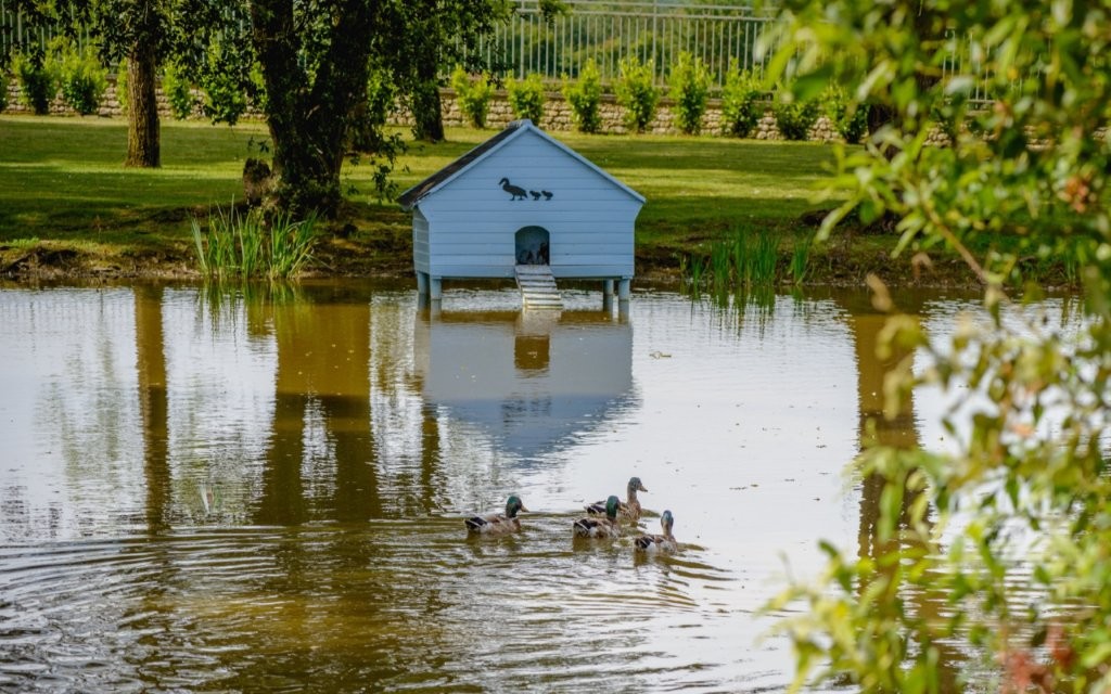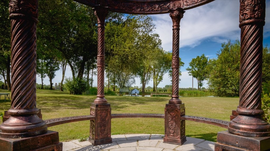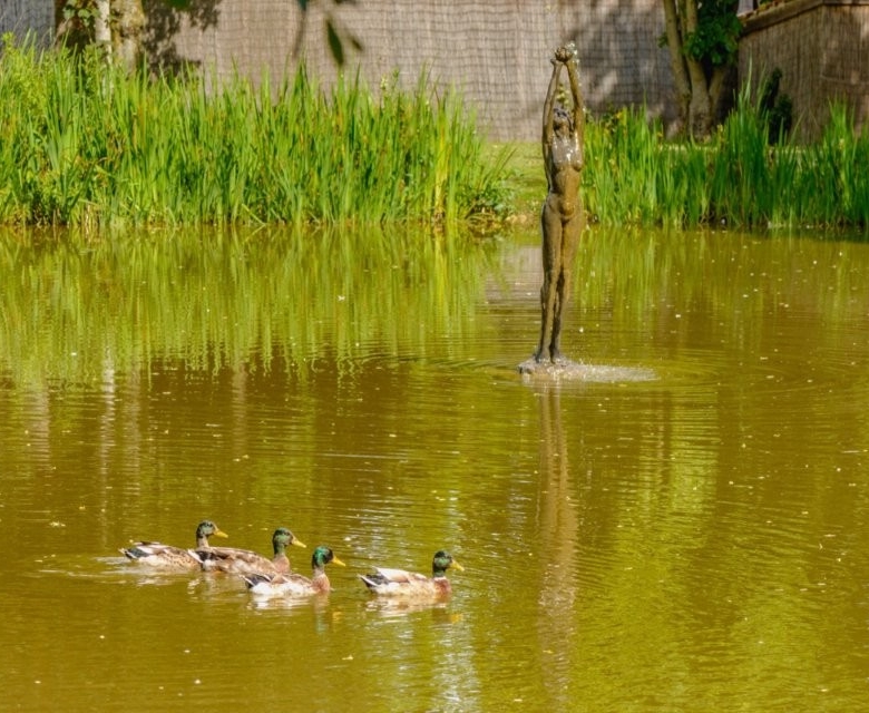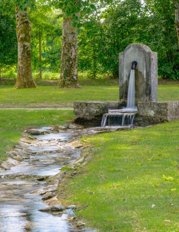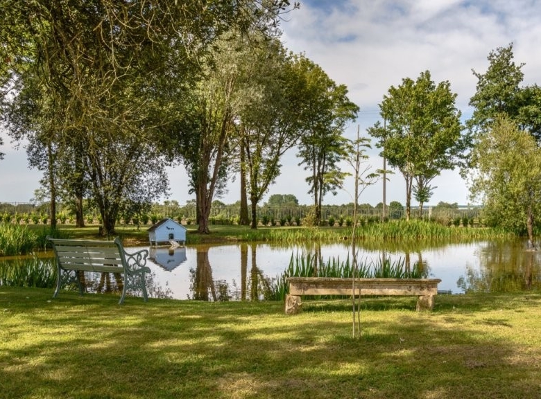 * A large pétanque fishing lake abundant with mirror and common carp, featuring a beautiful statue fountain in its centre.