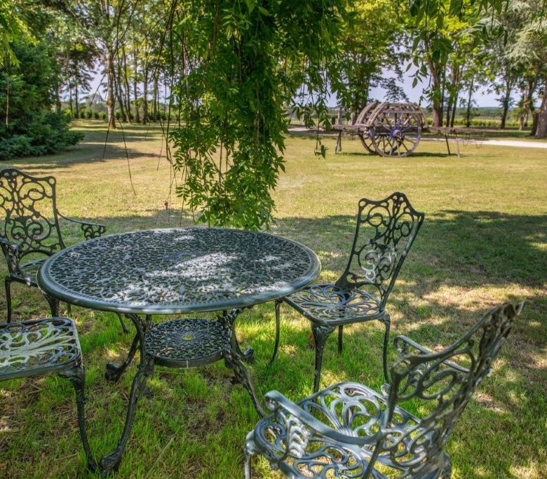 The Courtyard (618.550m2): This stunning Charentaise-style courtyard forms the heart of the domain, centred around a beautiful stone fountain. Large heavy wooden gates lead to the road, while ornate metal gates under a stone arch provide access to the main driveway. The courtyard offers access to the grounds, pool, and pétanque court, with stone planting troughs on a central watering system fed from a deep shaft well.
