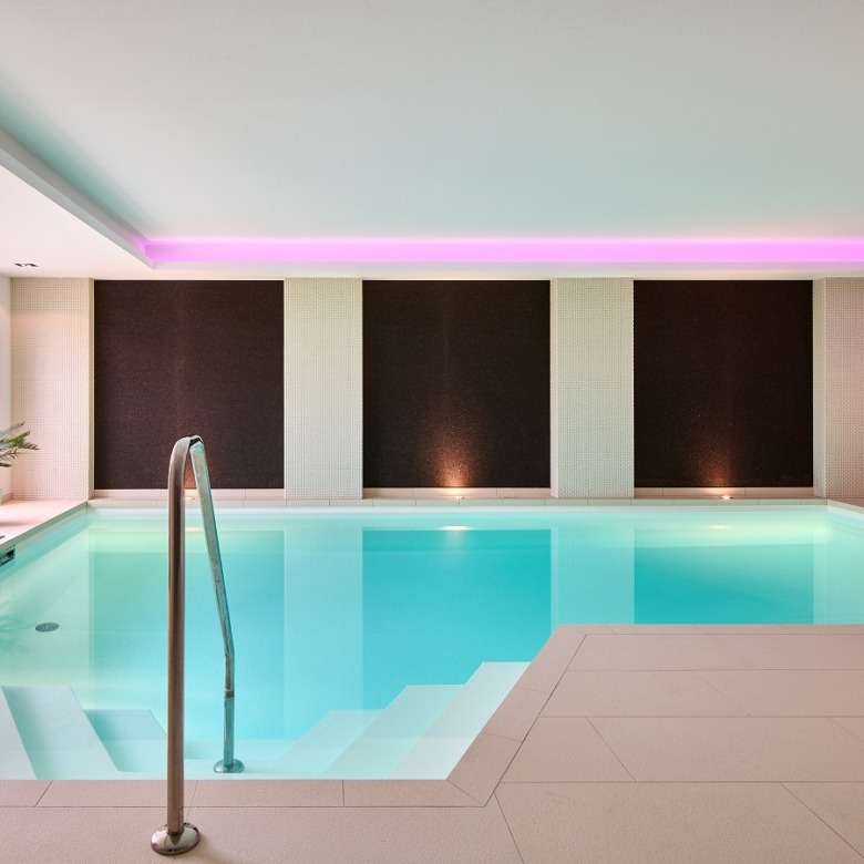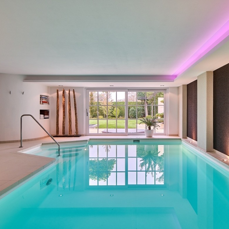 The exclusive wellness floor invites complete relaxation with a spacious indoor pool, a tasteful sauna area, and direct access to the peaceful garden—your private retreat, perfect year-round.