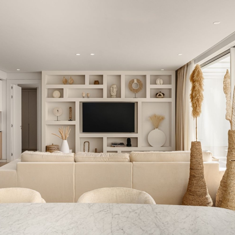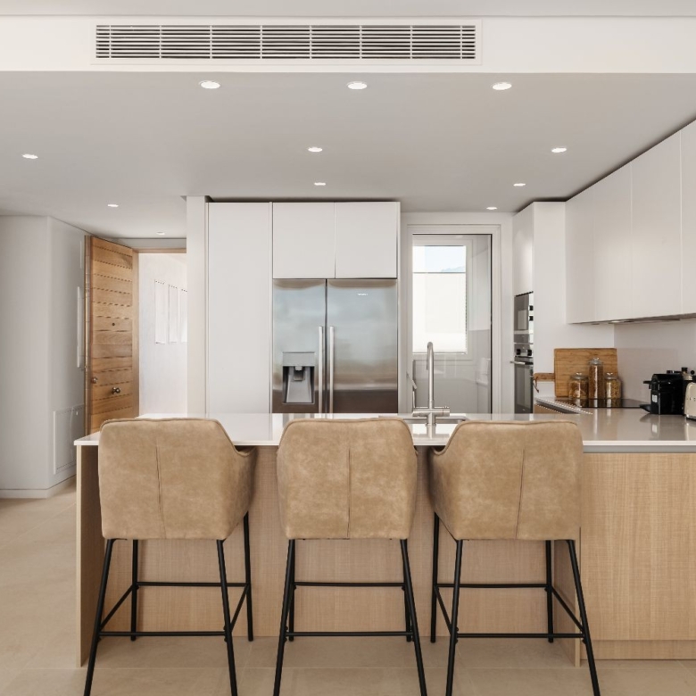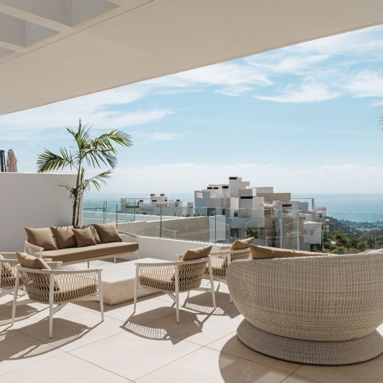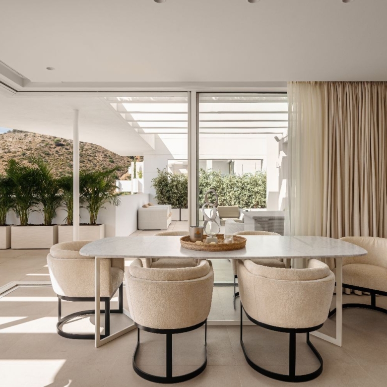 This exclusive 3-bedroom 2-level penthouse for sale is located in the new gated residential complex of Palo Alto, Ojen, just a few kilometers north of Marbella. This eco-friendly high-end development provides the most luxurious lifestyle and is known for its dramatic mountain setting around, unforgettable panoramic sea and mountain views, beautiful modern-style properties and many luxurious amenities. The community has a security entrance, 24-h security and concierge services, a Health Club with superb gym, a SPA-centre with sauna, Hammam, Jacuzzi and heated indoor pool, a Social Club and workspace for collaboration, and even a farmers’ market. The lush landscaped gardens surround the outdoor swimming pools, sunbathing and relaxation areas, tennis and paddle courts. Surrounded with idyllic Andalusian nature and similar high-end properties, the south-facing modern style duplex has been created to the highest specifications. Offering its residents utmost comfort and functionality, it features an open plan living room, dining area and sleek fully fitted kitchen with an island, 3 serene bedrooms, 3 modern bathrooms and a guest toilet. The glass doors let in the sun and natural light and provide a seamless connection between the rooms and terraces. The private, sunny and covered terraces and solarium invite to enjoy the spectacular panoramic vistas and the Costa del Sol warm and mild climate. The luxury property features also benefits from 3 parking spaces in a garage and a storage room. This beautiful home comes for sale in an excellent condition, fully furnished, nicely decorated and superbly equipped. The neutral colours create a soothing ambiance and stylish image. The apartment boasts many features that will make your life safe and super comfortable. It is equipped with a lift, air conditioning, underfloor heating, automatic irrigation system, electric blinds, video entrance, double-glazing, fitted wardrobes, Internet – Wi-Fi and satellite TV. Move in and start enjoying the modern lavish lifestyle right away!