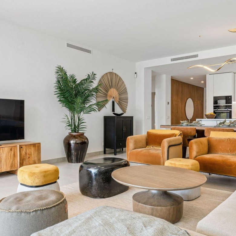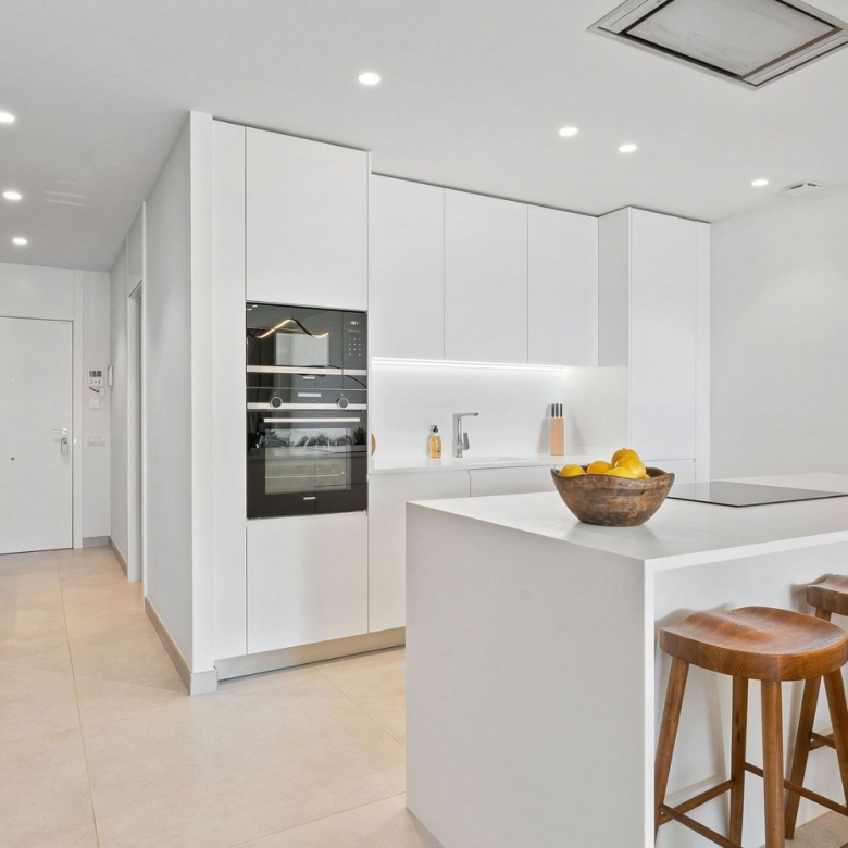 This stunning three-bedroom, two- bathroom apartment, built in 2024, embodies coastal living with its enviable south-facing orientation that delivers breathtaking panoramic sea views. The layout champions a convenient and fluid floor plan. The main living space is an expansive open-plan area that integrates the kitchen, dining, and lounge areas. This space extends to an elegant terrace, where you can soak in mesmerising sea views. The master bedroom, equipped with an en-suite bathroom, serves as a private sanctuary. Additional bedrooms offer ample space and versatility, with one even designed to transition into a home office if needed. Amenities feature an alarm system, barbecue setup, gym, and sauna—essential for both relaxation and entertainment. Security and privacy are paramount in this community, with controlled access ensuring peace of mind. Add to this the practicality of two underground parking spaces and a personal storage room.