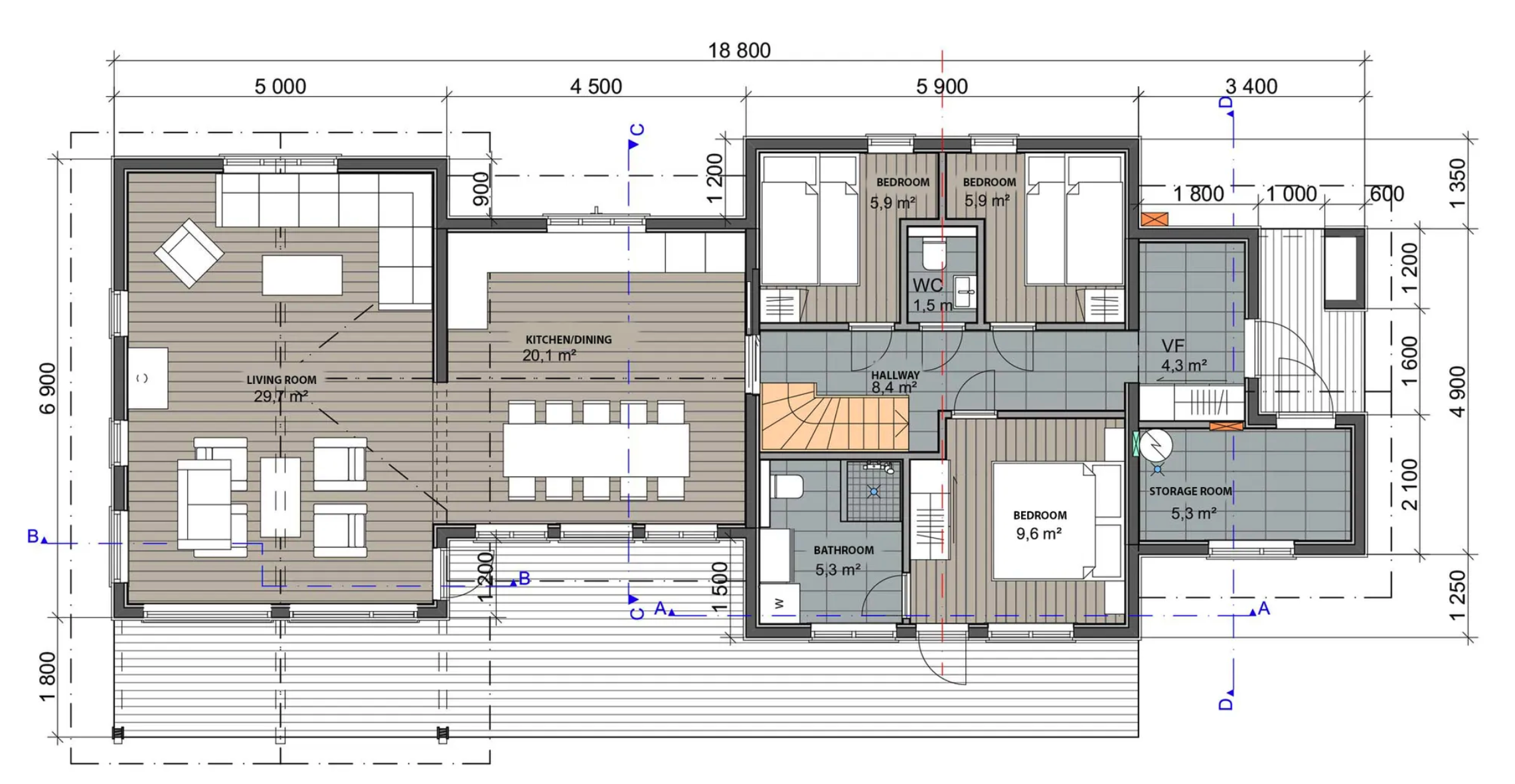 The Skogstjerne II is the epitome of Scandinavian mountain living – where clean design meets natural comfort. Offering 152.7 m² of carefully planned space, this stunning property blends traditional craftsmanship with modern lifestyle features.