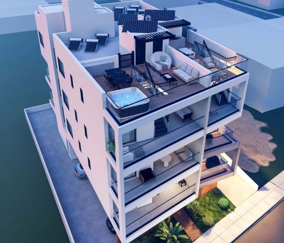 This impressive 2 bedroom penthouse features a minimalist design with high quality materials and premium finishes throughout. It offers generous living space complemented by a massive private roof garden, perfect for relaxation and entertaining. Perfectly located close to Larnaca Mall, the property provides easy access to schools, shops, restaurants, and cafes. With convenient access to highways connecting Nicosia, Limassol, and Famagusta, this home combines comfort, style, and excellent connectivity for modern family living.