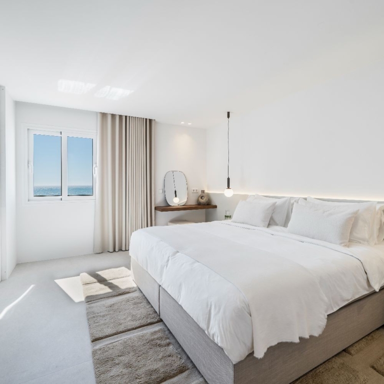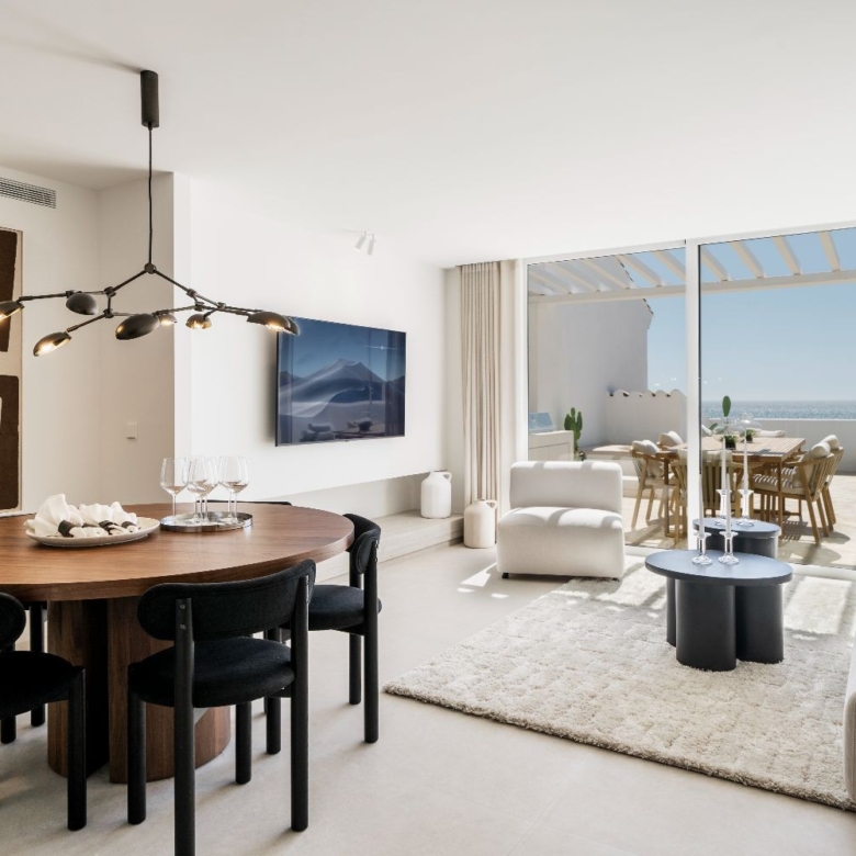 Location and views take centre stage in this smart apartment. Lodged on the penultimate floor in the heart of Puerto Banús, it offers penthouse vibes with an expansive terrace, outdoor fireplace, and shower – all framing stunning views of the Mediterranean and Puerto Banús’ marina. Step out of the elevator, and it’s within walking distance to everything – luxury boutiques, the beach, Puerto Banús’ iconic plaza market, El Corte Inglés, Marina Banús Mall, and all the best restaurants. Plus, it includes private parking for easy trips around the Costa del Sol. Fully renovated with a clean, minimalist design, the space feels bright all day long thanks to its south-facing orientation. The open-plan kitchen flows into the living area and straight out to the massive terrace. Perfect for hosting, the apartment showcases three bedrooms: one standard and two large en-suites, each with custom storage. One opens onto a private terrace with views of Banús, an outdoor tub, and a chill zone, while the other soaks in Mediterranean views. With central air conditioning and underfloor heating in the bathrooms, this apartment makes it a year-round escape, blending luxury and comfort effortlessly.