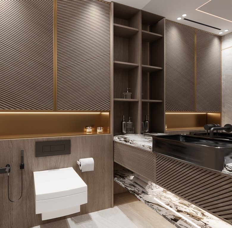 Bathrooms: Modern fixtures with high-quality finishes
