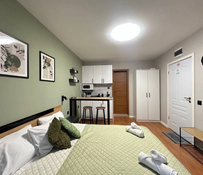 Luxury studio on the first sea line! Prestige Fort Beach, Sveti Vlas We are pleased to offer you this lovely luxury studio boasting its exclusive location – on the first sea line, next to a sandy beach in Sveti Vlas. The studio is situated on the ground floor and has a total area of 34 sq.m. It comprises of: – entrance hallway; – kitchen with bedroom area; – bathroom/WC; – balcony with garden views. The studio is offered elegantly furnished and ready to use. Excellent rental potential! Prestige Fort Beach is an exclusive first line complex, located in the north part of Sunny Beach, very close to the town of Saint Vlas. Thanks to the architectural design, the well-executed construction works with high quality building materials, and most importantly, unique location on the beachfront, Prestige Fort Beach is ideal both for an investment and for a second home on the sea side. The complex is completed and has Act 16 and operates all-year-round. Prestige Fort Beach offers the following facilities: – 30 meters swimming pool, located in the center of a great arranged spacious courtyard; – Children’s pool; – Fitness; – Massage room; – A cozy restaurant with summer terrace; – Tennis court / football field; – Playground; – Recreation area; – Super market; – Free parking for the owners of apartments; – Laundry service / dry cleaning; – All year-round security – Internet access over the whole territory of the complex The owners pay an annual maintenance and management tax, in amount of 15.50 euro including 20% VAT per square meter of the total area of the apartment.