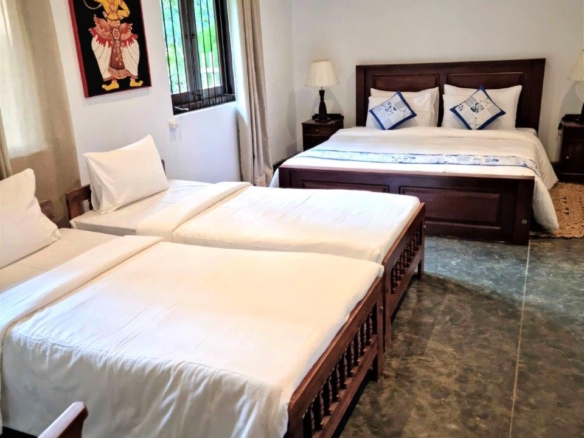 Move right in and start enjoying your Sri Lankan paradise! The villa comes fully furnished, including handcrafted teak furniture, crockery, cutlery, linen, beds, kitchen utensils, pots & pans, fans, and air conditioners.