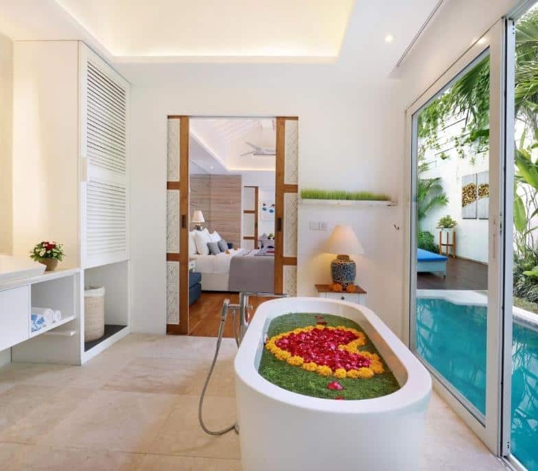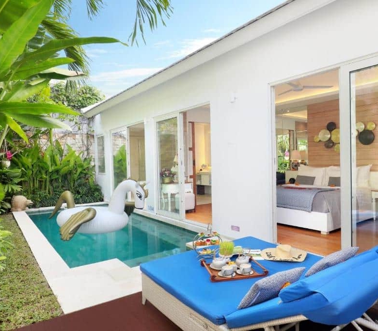 Minutes from downtown Seminyak and Petitenget, this 1-bedroom FREEHOLD luxury villa hotel complete with high end facilities and services is located in a quiet neighbourhood close to shops and has easy access to Seminyak beaches and all that the area has to offer. Sunset Road is nearby connecting the property to other areas of Bali – Sanur, Jimbaran, Nusa Dua and Kuta. The airport is only 30 minutes away. A perfect accommodation spot for tourists.