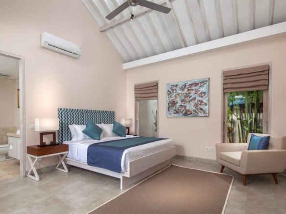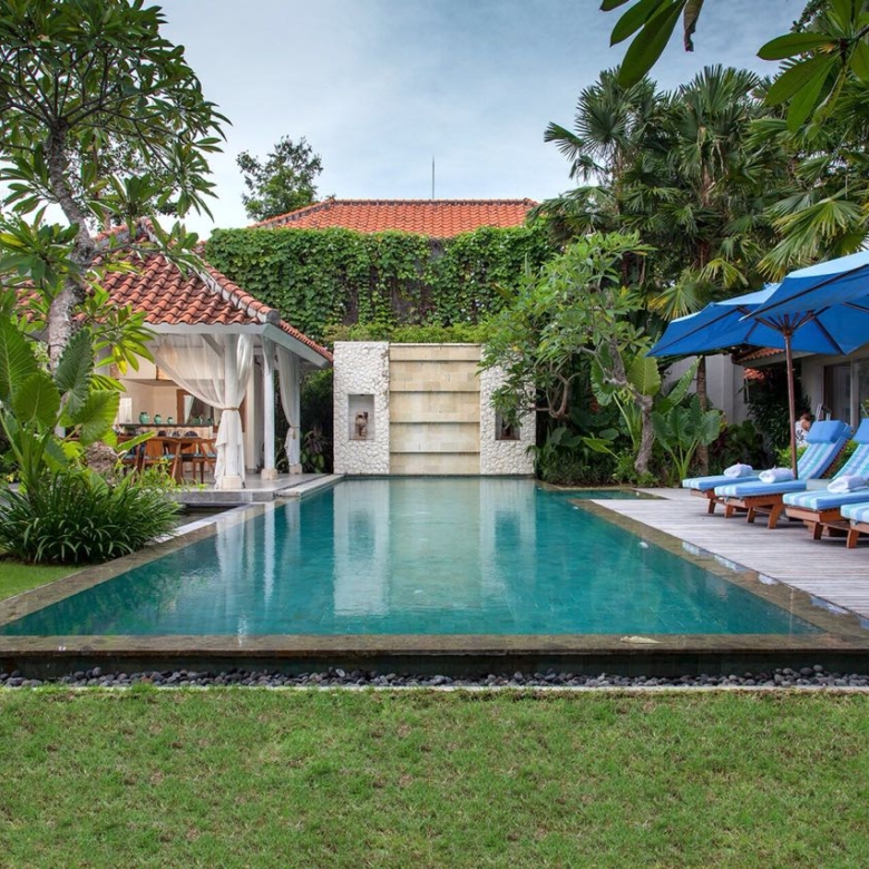 Resting upon 1040sqm of freehold land, with 620sqm of luxury living space, this stunning 4-bedroom FREEHOLD villa comprises a main 2-storey building and a single-storey long house positioned along 2 sides of a 19-metre lap-pool, complete with a bale relaxation pavilion and manicured tropical gardens.The main building houses the spacious air-conditioned living and dining room and a modern fully-fitted kitchen, with the luxurious master suite situated upstairs.The single-storey building houses three more bedroom suites and a media room with bar and lounge area, making this an ideal family residence.The property also hosts separate staff quarters, a laundry room and onsite parking. Conveniently located in the historical and family-friendly village of Sanur, which is characterised by leafy lanes, majestic trees, and safe gold-sand beaches, the villa is within easy walking distance of Mertasari Beach, shops, supermarkets and restaurants, just 15 minutes from international Airport.