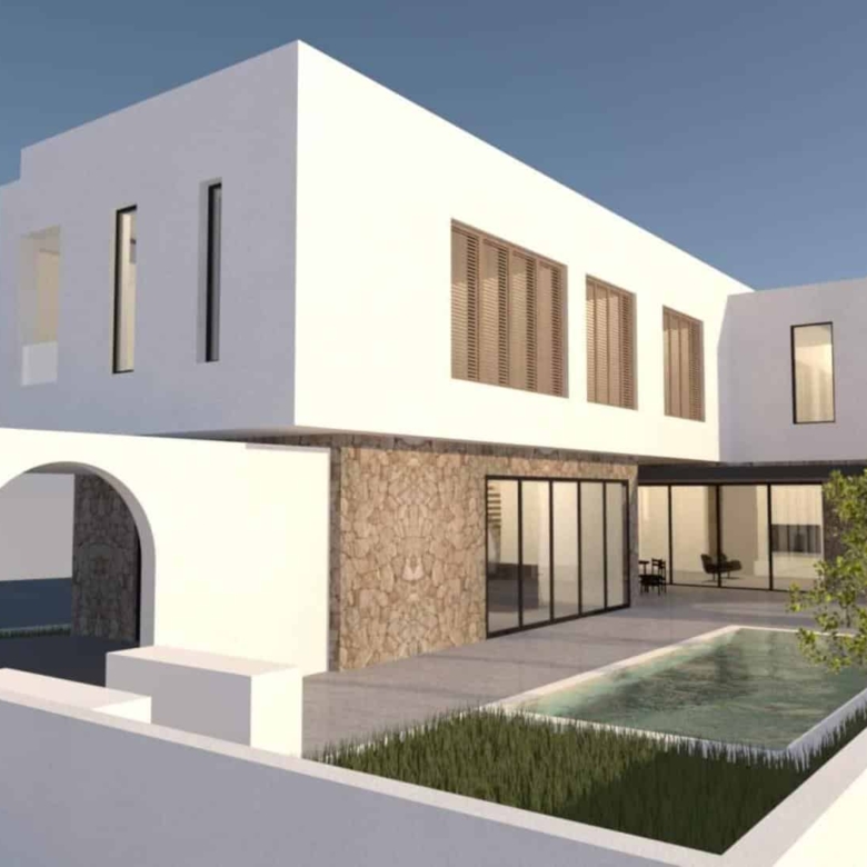 This substantial four bedroom detached house is situated moments from City Centre of Larnaka, within a 4 minutes distance driving from the beach. A modern architecture design combining traditional features. A clear separation of social and private zones! The ground floor is planned with spacious and lightful rooms where it consists of a living room, kitchen, bedroom, covered veranda and a double covered garage. On the first floor you can find 4 ensuite bedrooms, in the main bedroom you can find a spacious wardrobe and also a laundry room with a covered veranda.