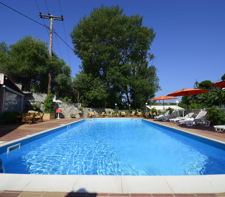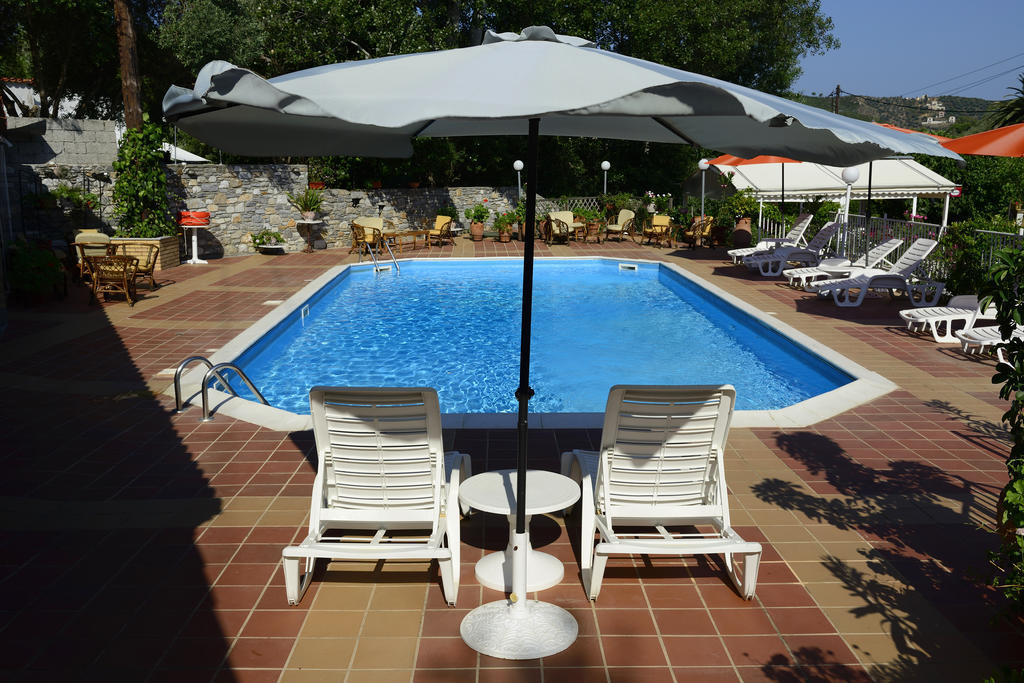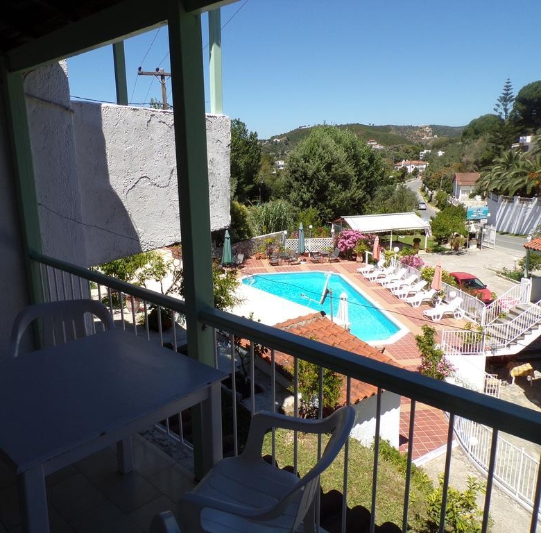 Each accommodation within Villa Pappas is imbued with traditional Greek charm, featuring warm wood furnishings and cool tiled floors. The spacious rooms are equipped with modern amenities, including kitchenettes, comfortable seating areas, air conditioning, televisions, and cozy beds. Select units also feature stone fireplaces, adding a touch of rustic elegance. All accommodations offer either pool or street views, allowing guests to enjoy the picturesque surroundings.