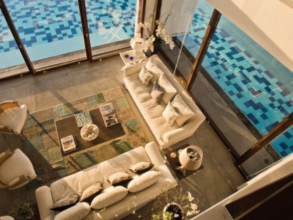 Villa Santé has been meticulously developed with a focus on self-sufficiency and uncompromising comfort. The property boasts its own state-of-the-art Reverse Osmosis (R.O.) water purification plant, ensuring a constant supply of drinking water. In addition, a powerful 100 KVA generator provides a reliable backup power source, guaranteeing uninterrupted electricity supply. The villa is also connected to the mains power grid, offering a dual system for ultimate reliability. This thoughtful infrastructure underscores the commitment to providing a seamless and worry-free living experience in this idyllic coastal setting. The heart of the property is the magnificent main building, featuring a distinctive L-shaped infinity pool that gracefully extends around the expansive living room, creating a stunning visual centerpiece and offering direct access to the refreshing waters from the main living areas. This impressive architectural design encompasses an estimated area of 8,500 to 10,000 square feet, providing ample space for luxurious living and entertaining.