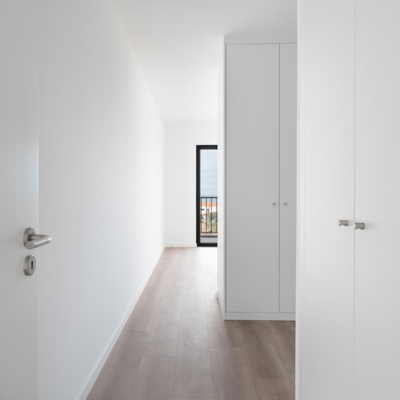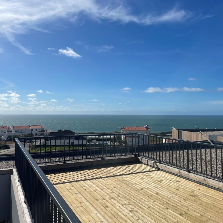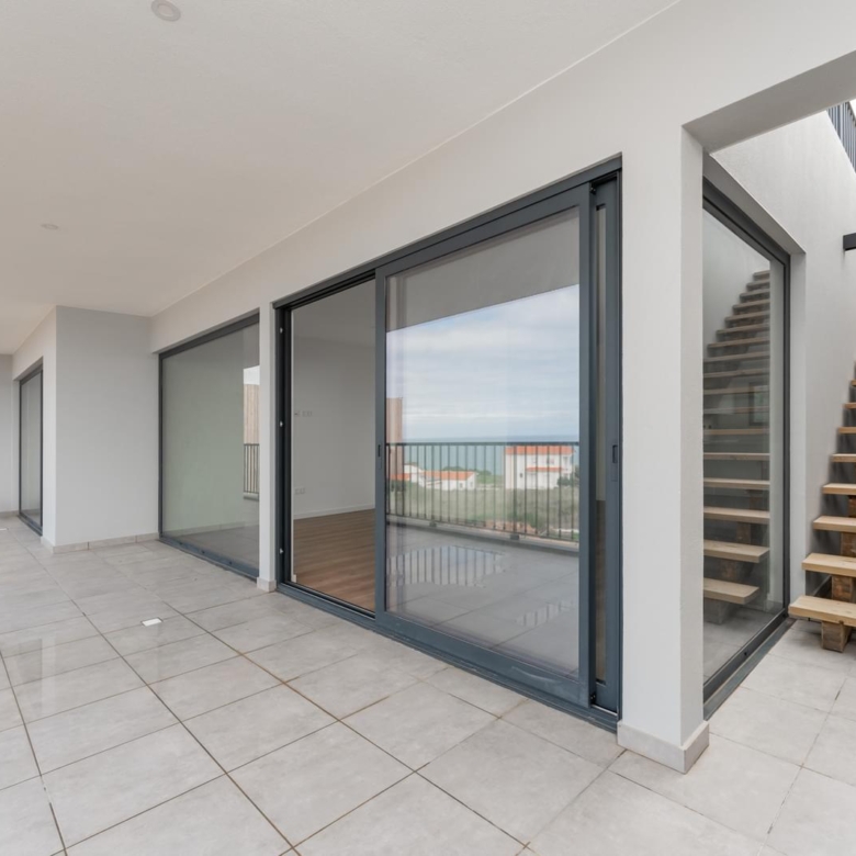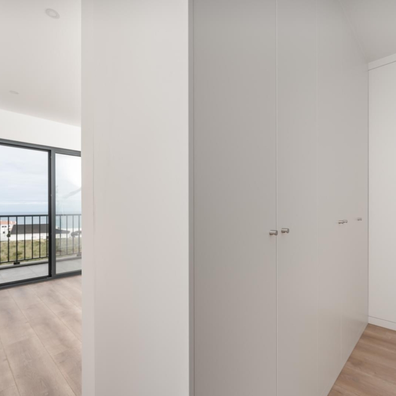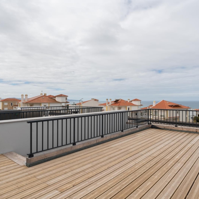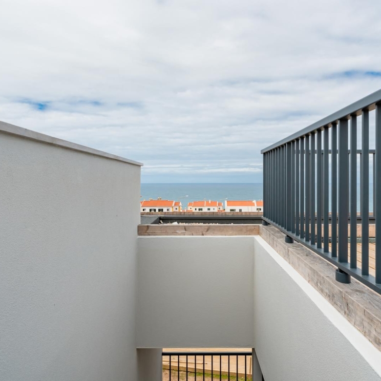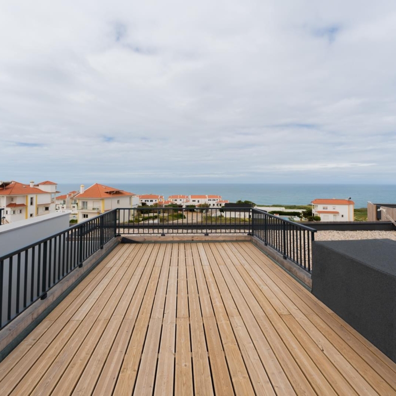 3 bedroom apartment on the last floor, with a 37 sqm private terrace on the rooftop, with total sea view, inserted in a closed condominium, with swimming pool and garden. It is under construction with the deeds scheduled for September 2024. This business is a resale. It is composed by: - living room facing West (33 sqm) in open space with the kitchen (13 sqm) equipped with Bosch household appliances; with access to a balcony (26 sqm) with sea view; - Suite (23 sqm) with closet, full private bathroom and balcony with sea view; - 2 bedrooms (12 sqm + 13 sqm) with wardrobes and access to a balcony (10 sqm); - full private bathroom to support the bedrooms (5 sqm); - Private terrace on the rooftop with access from the balcony of the living room with total sea view (37 sqm); - Storage area (12 sqm); - 2 parking spaces outside the condominium. The condominium is located 3 km away from the village of Ericeira and 1 km away from the Ribeira d’Ilhas beach. Innovative construction with the ‘Wood Frame’ method, used in Northern Europe, Japan, the United States and Canada, consisting of the use of certified wood from renewable forests, with less use of water and gas emissions. Due to the high level of quality standards, it is classified with energy certification A, which allows high thermal insulation, high-performance acclimatization and therefore reduction in energy costs. The closed condominium, with swimming pool and landscaped communal areas, is totally facing east and west, consisting of two blocks of 4 and 8 apartments, all with balconies, porches, garden or terraces. Structure of the building: Anti-seismic, in laminated beams wood of high strength and stability, sized according to the regulations in force. Facade : Insulation of the walls in mineral wool panels with vapor barrier, coated in anthracite flat tile or slatted in heat treated wood. Window frames: Outside, aluminum with thermal cutting in anthracite color and double glazed windows with air box. Inside, roller blinds blackout with electrical control. Flooring in floating floor. Sanitary facilities: - Ceramic floor Roca. - Washbasins in white porcelain and suspended countertop. - Shower trays made of white acrylic sheet. - Top-finished single-lever taps. - Tempered glass mirror and shower enclosures. Kitchen: Equipped with Bosch household appliances: exhaust fan, induction hob, multifunction oven, microwave, combined fridge, washing machines and dishwashers. Acclimatization: - Air conditioning, inverter type, consisting of multi-split system. - Water heating. Exterior: Parking areas, with space for people with reduced mobility and visitors, with the possibility of installing electric vehicle charging. Pedestrian access, gardens, swimming pool and leisure area on deck. Porta da Frente Christie’s is a real estate agency that has been operating in the market for more than two decades. Its focus lays on the highest quality houses and developments, not only in the selling market, but also in the renting market. The company was elected by the prestigious brand Christie’s International Real Estate to represent Portugal, in the areas of Lisbon, Cascais, Oeiras, Sintra and Alentejo. The main purpose of Porta da Frente Christie’s is to offer a top-notch service to our customers. Property ID: PDF-PF32480 Price: €790,000 Property Size: 122.0 m2 Bedrooms: 3 Bathrooms: 2 Year Built: 2024 Property Type: Apartment Property Status: For Sale