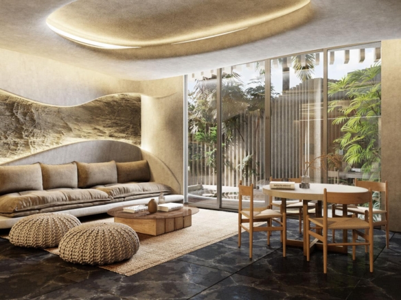 Spanning 176 square meters of meticulously designed interior space, the residence features an open-concept layout that maximizes natural light and uninterrupted ocean views. Every detail has been carefully considered, from the fluid curves of the architecture to the refined textures that evoke a sense of harmony with nature. An additional 77 square meters of exterior space provide the perfect setting for outdoor relaxation, with expansive terraces that invite the soothing sounds of the waves and gentle coastal breezes.