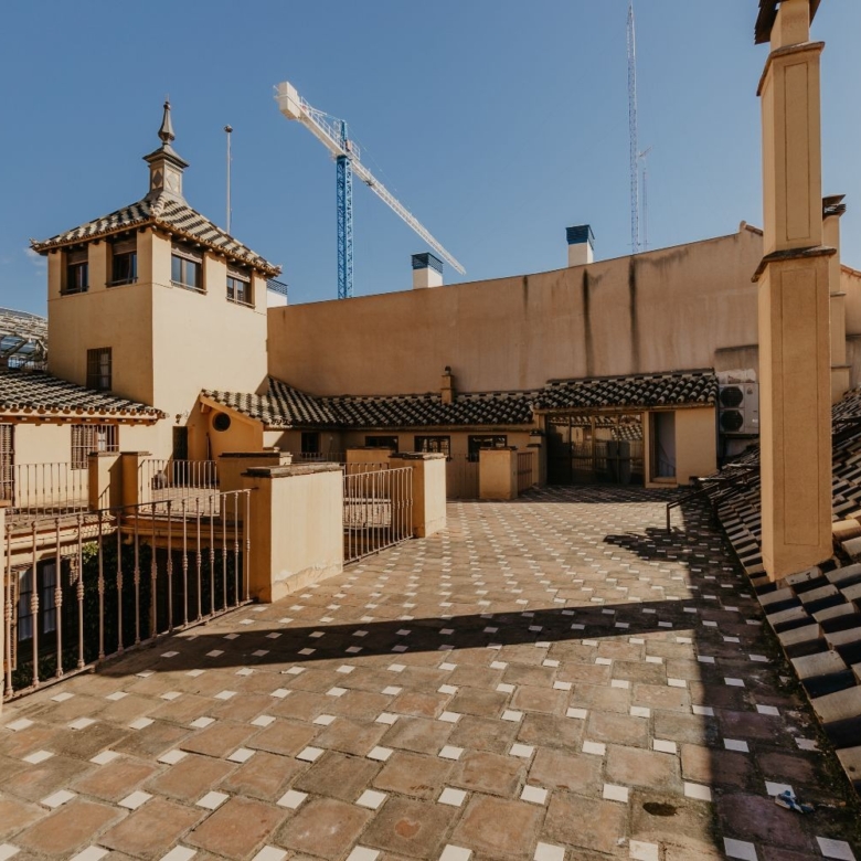 PENTHOUSE FOR SALE IN CENTRO HISTÓRICO, MALAGA Penthouse for sale in a Baroque buildings from Don Francisco de Zea Salvatierra, in front of the Plaza de los Naranjos and the Malaga Cathedral. This unique property has an impressive architecture with historical details such as statues, wide traditional doors, elevator with wooden panels, a beautiful patio full of ivy etc. The building was built at the end of the 17th century and the beginning of the 18th century and was rehabilitated several years later. The penthouse is very impressive with its spacious salons, dining room and windows with splendid views of the Cathedral and the park with its oranges. There are two beautiful antique fireplaces in the apartment, in a addition the property has several bedrooms all with built-in wardrobes made of wood along with several private bathrooms. You can access the top roof terrace from the kitchen via a spiral staircase that provides one of the most breathtaking views of the Cathedral and of Malaga old town, This is a one of unique oprtunity to buy a penthouse in a beautiful atmosphere, in a emblematic – Baroque building closest to the Cathedral is with out doubt the No.1 location in Malaga