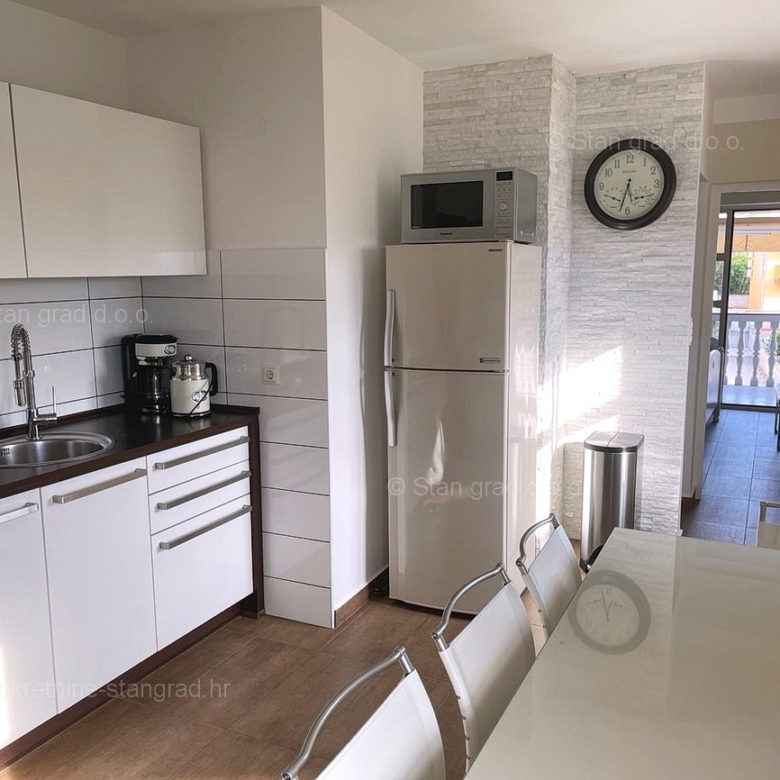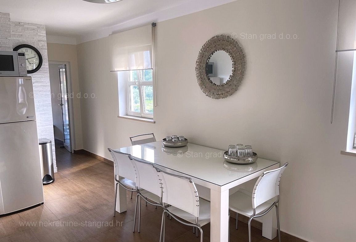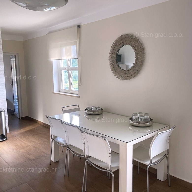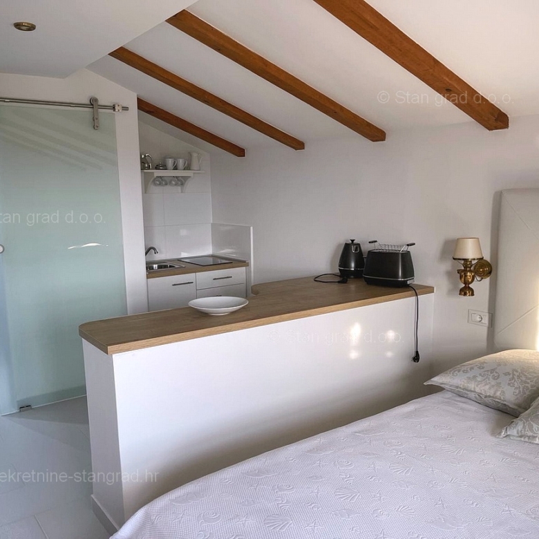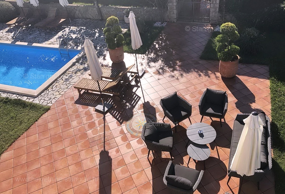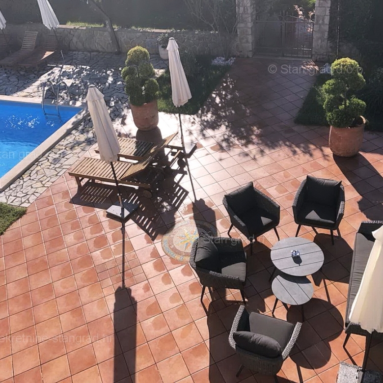 Our real estate offer includes a very high-quality house for a tourist stay in the northern Adriatic, on the usually desirable and advanced Kvarner destination, the island of Krk. This attractive property is located in an outstanding location close to the center of the famous tourist town of Malinska. Structurally speaking, this is a single-story house with a well-established tourist activity. The total area of this house is 1000 m2. This area is occupied by 9 fully equipped, categorized one- and two-room apartments. On the ground floor of the property there are two spacious living rooms with access to the garden where there is a 29 m2 swimming pool. The house also has additional rooms, namely a boiler room and several storage rooms. The property with a preserved interior is equipped with a set of very good technical equipment and quality pieces of furniture. The special charm of this property is given by the exceptionally landscaped garden, which includes a swimming pool and a sunbathing area. The garage of this property can accommodate two vehicles, and on top of that, the possibility of outdoor parking is provided in the garden of the property. In addition to the previous characteristics, it is important to say that the house has a beautiful view of the sea and the coast. This real estate is owned by a natural person and as such, upon transfer of ownership to the buyer, is subject to the obligation to pay real estate sales tax in the amount of 3%. The real estate seller guarantees a quick transfer of ownership rights and proper ownership and technical documentation. It will be our pleasure to receive you and serve you on the island of Krk. If you put your trust in us, the friendly team of agents and staff of the Stan Grad Immobilien office will be happy to help you transfer property ownership and utility bills to your name.
