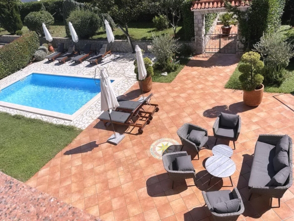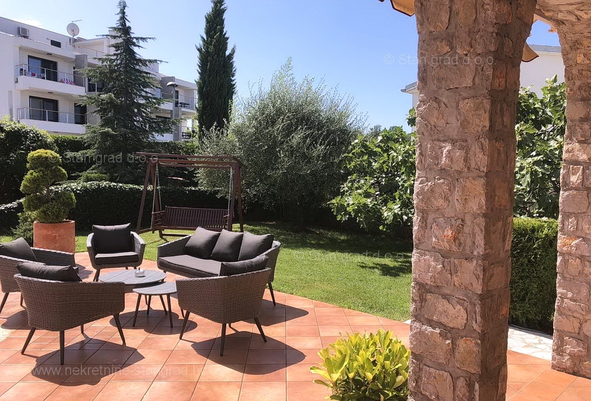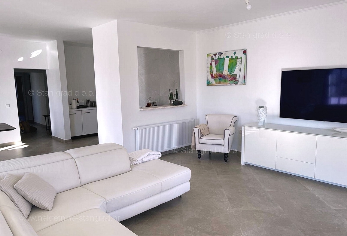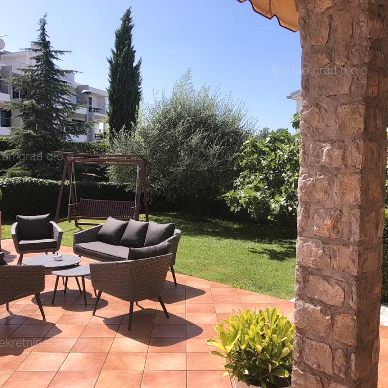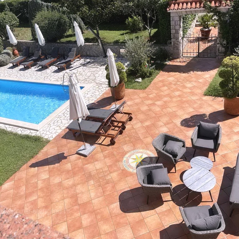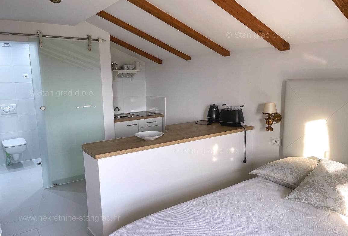 Our real estate offer includes a very high-quality house for a tourist stay in the northern Adriatic, on the usually desirable and advanced Kvarner destination, the island of Krk. This attractive property is located in an outstanding location close to the center of the famous tourist town of Malinska. Structurally speaking, this is a single-story house with a well-established tourist activity. The total area of this house is 1000 m2. This area is occupied by 9 fully equipped, categorized one- and two-room apartments. On the ground floor of the property there are two spacious living rooms with access to the garden where there is a 29 m2 swimming pool. The house also has additional rooms, namely a boiler room and several storage rooms. The property with a preserved interior is equipped with a set of very good technical equipment and quality pieces of furniture. The special charm of this property is given by the exceptionally landscaped garden, which includes a swimming pool and a sunbathing area. The garage of this property can accommodate two vehicles, and on top of that, the possibility of outdoor parking is provided in the garden of the property. In addition to the previous characteristics, it is important to say that the house has a beautiful view of the sea and the coast. This real estate is owned by a natural person and as such, upon transfer of ownership to the buyer, is subject to the obligation to pay real estate sales tax in the amount of 3%. The real estate seller guarantees a quick transfer of ownership rights and proper ownership and technical documentation. It will be our pleasure to receive you and serve you on the island of Krk. If you put your trust in us, the friendly team of agents and staff of the Stan Grad Immobilien office will be happy to help you transfer property ownership and utility bills to your name.