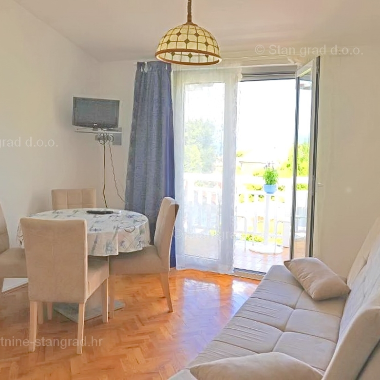 In the offer of our agency on the super attractive northern Adriatic area of the island of Krk, in Kvarner, a fully furnished tourist house is for sale, which provides the perfect atmosphere for spending annual and weekend vacations. This beautiful house is in a very attractive location near the sea and the center of the tourist center of Malinsko. According to the type of building, the building can be categorized as a single-story house. The very beautiful building is built on 3 usable floors. The property covers a total area of 350 m2. In the basement of the house there is an apartment consisting of an entrance hall, a storage room, a bedroom, a bathroom, a kitchen with a dining room and a living room with access to a spacious terrace. On the ground floor and on the first floor there is a two-story apartment consisting of 2 bedrooms, 2 bathrooms, hallway, kitchen with dining room, living room, covered terrace and 2 balconies. The second part of the house contains 4 one-room apartments. Each apartment consists of a bedroom, bathroom, kitchen, living room and terrace. The interior of the property is very well maintained and fully equipped with all necessary technical devices and quality furniture. Attached to the described house is a well-organized garden with an equipped grill area. The spacious garden of the described property is equipped with comfortable parking for several vehicles. In addition to the above, it should be noted that the house has a beautiful panoramic view of the sea. This real estate is owned by a natural person and in the name of its transfer, the buyer of the house is obliged to pay real estate sales tax in the amount of 3%. The owner of the property guarantees the orderliness of the relevant ownership documents and the possibility of a quick transfer of ownership of the house to the buyer. Contact us with confidence at the address of the office on the island of Krk and we will be your partner for the safe purchase of real estate in Kvarner. If you place your trust in us, the Stan Grad Immobilien agency will be happy to help you transfer the ownership rights of this property and the bill for its utility connections and services to your name.