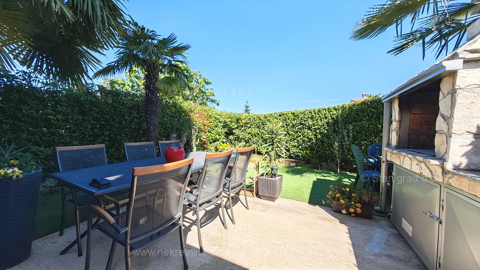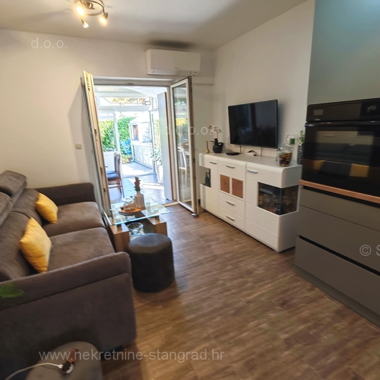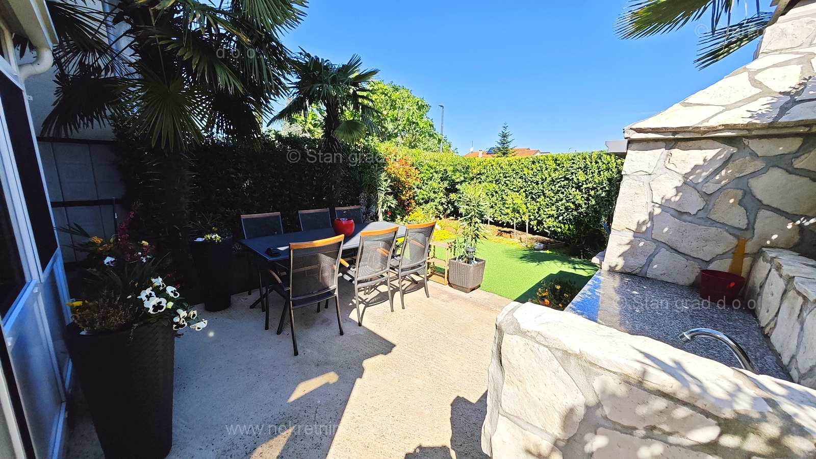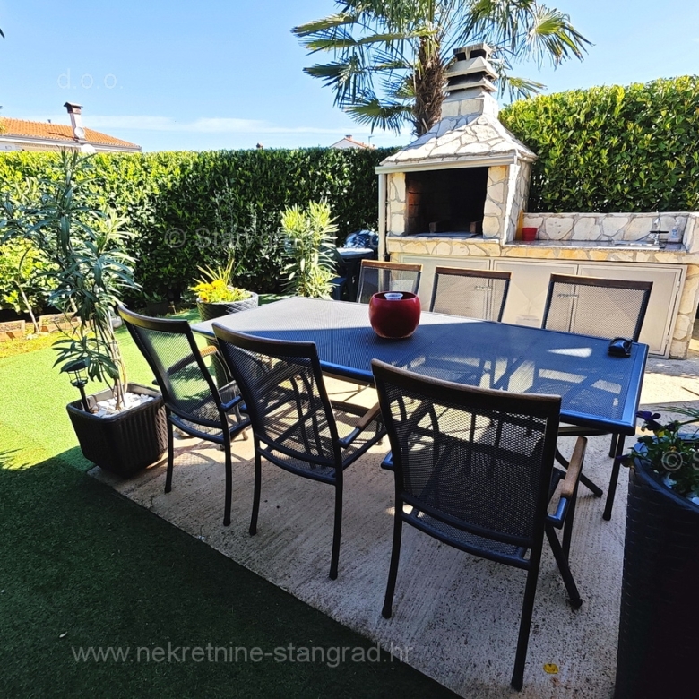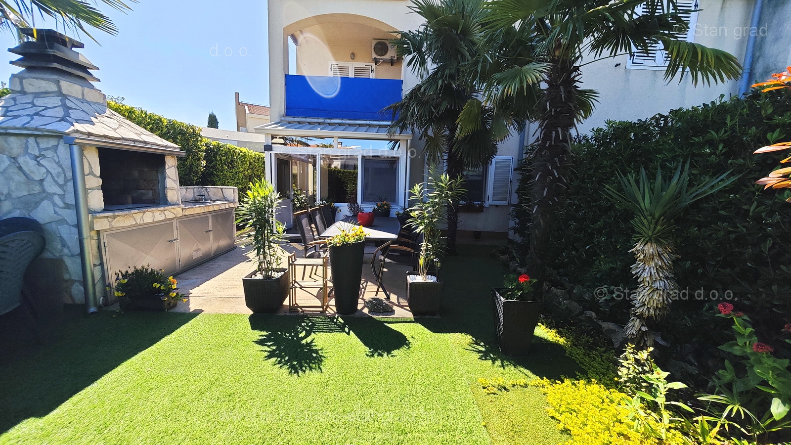 From the diverse offer of real estate, we highlight a traditionally built apartment in the well-known northern Adriatic Mediterranean destination, the island of Krk. This property is located in an excellent location, close to the sea and the beach and not far from the center of Malinska. Considering the property by type, this is a spacious one-story apartment. Within a very beautiful building, the apartment is located on the ground floor. The apartment covers a total area of approximately 61 m2. This area is occupied by the entrance hall, living room and kitchen, 2 bedrooms, bathroom and closed loggia. The interior of the property has been renovated and is fully equipped with all the necessary technical devices and quality furniture. It is certainly worth noting that the ownership of the described apartment also includes a well-organized garden with an equipped grill area, a summer kitchen and a storage room. The owner of the apartment will have two parking spaces at his disposal. Excellent location, close to the center and the sea. The apartment in question is owned by a physical obligation and upon transfer of ownership is subject to the calculation of real estate sales tax in the amount of 3%. The real estate seller guarantees a quick transfer of ownership rights and proper ownership and technical documentation. It will be our pleasure to receive you and serve you on the island of Krk. If you put your trust in us, the friendly team of agents and staff of the Stan Grad Immobilien office will be happy to help you transfer the ownership of the property and the utility bill to your name.