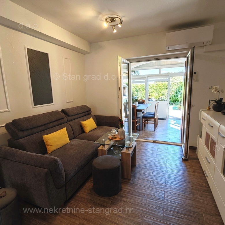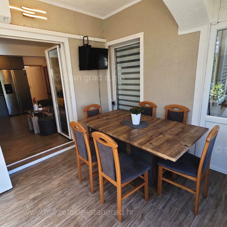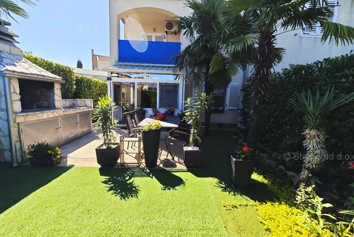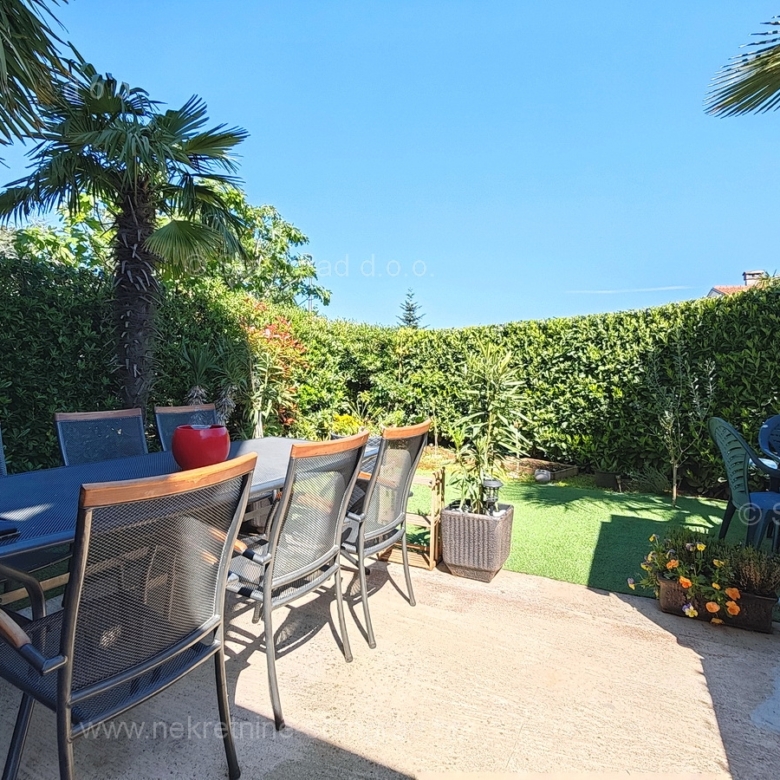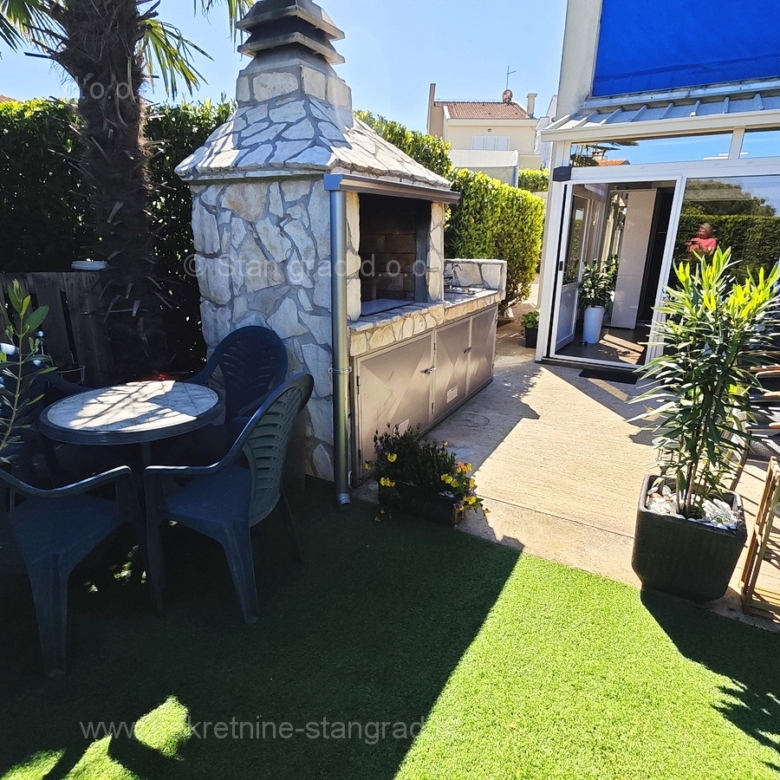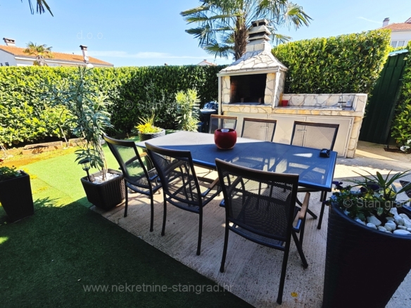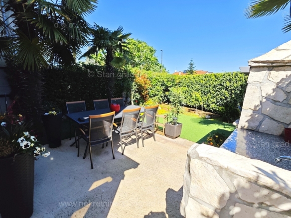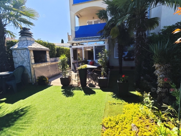 From the diverse offer of real estate, we highlight a traditionally built apartment in the well-known northern Adriatic Mediterranean destination, the island of Krk. This property is located in an excellent location, close to the sea and the beach and not far from the center of Malinska. Considering the property by type, this is a spacious one-story apartment. Within a very beautiful building, the apartment is located on the ground floor. The apartment covers a total area of approximately 61 m2. This area is occupied by the entrance hall, living room and kitchen, 2 bedrooms, bathroom and closed loggia. The interior of the property has been renovated and is fully equipped with all the necessary technical devices and quality furniture. It is certainly worth noting that the ownership of the described apartment also includes a well-organized garden with an equipped grill area, a summer kitchen and a storage room. The owner of the apartment will have two parking spaces at his disposal. Excellent location, close to the center and the sea. The apartment in question is owned by a physical obligation and upon transfer of ownership is subject to the calculation of real estate sales tax in the amount of 3%. The real estate seller guarantees a quick transfer of ownership rights and proper ownership and technical documentation. It will be our pleasure to receive you and serve you on the island of Krk. If you put your trust in us, the friendly team of agents and staff of the Stan Grad Immobilien office will be happy to help you transfer the ownership of the property and the utility bill to your name.